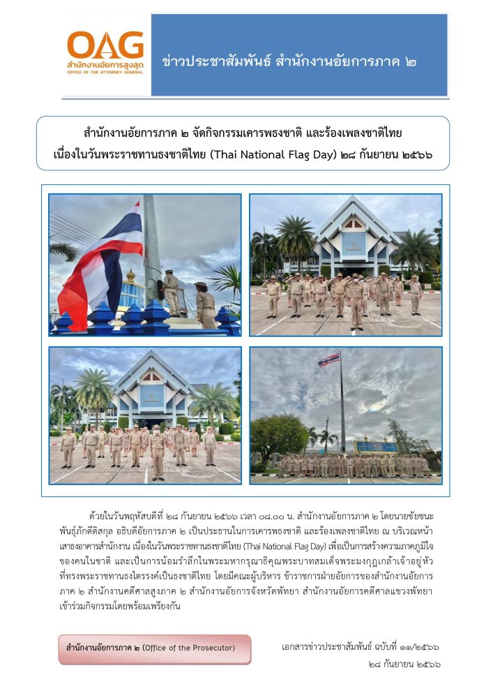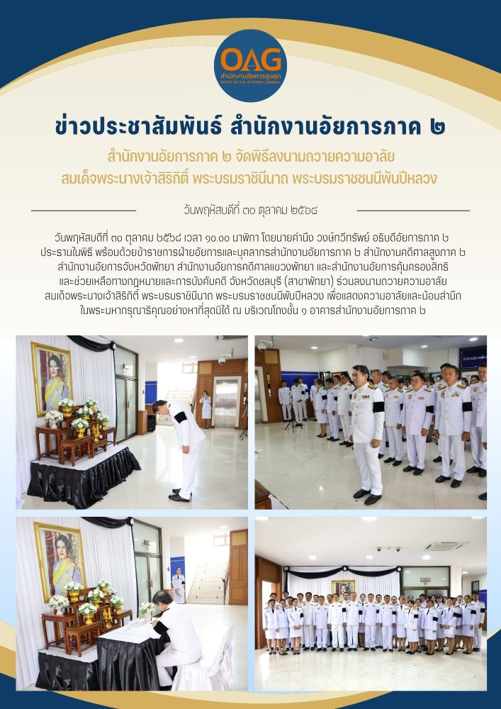 สำนักงานอัยการภาค ๒ จัดกิจกรรมน้อมรำลึกในพระมหากรุณาธิคุณ เนื่องในวันคล้ายวันสวรรคต พระบาทสมเด็จพระบรมชนกาธิเบศรมหาภูมิพลอดุลยเดช บรมนาถบพิตร