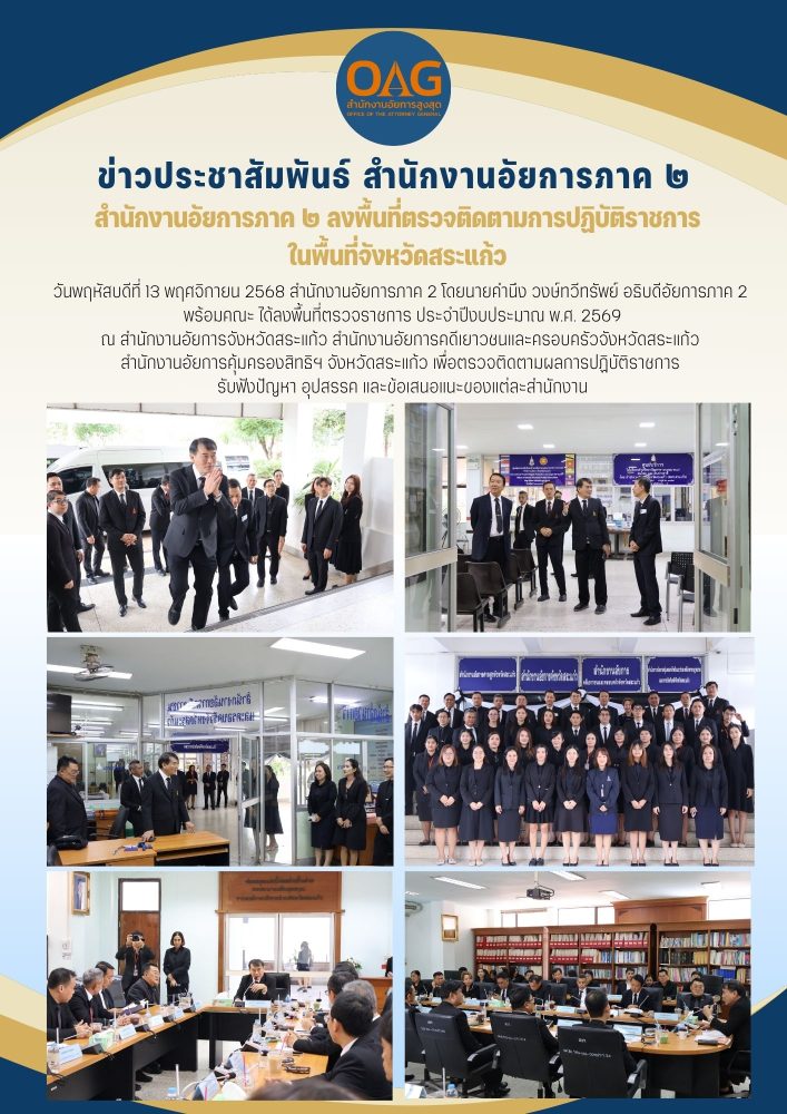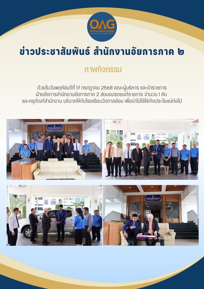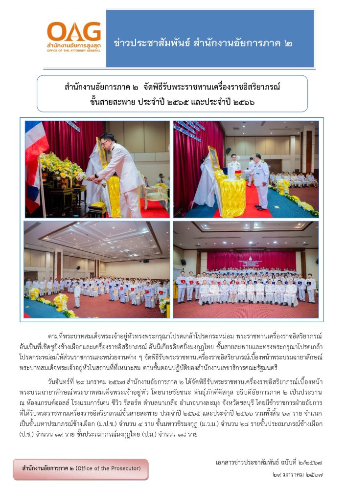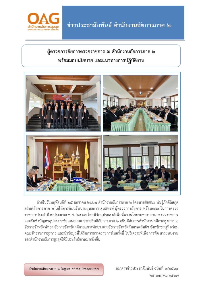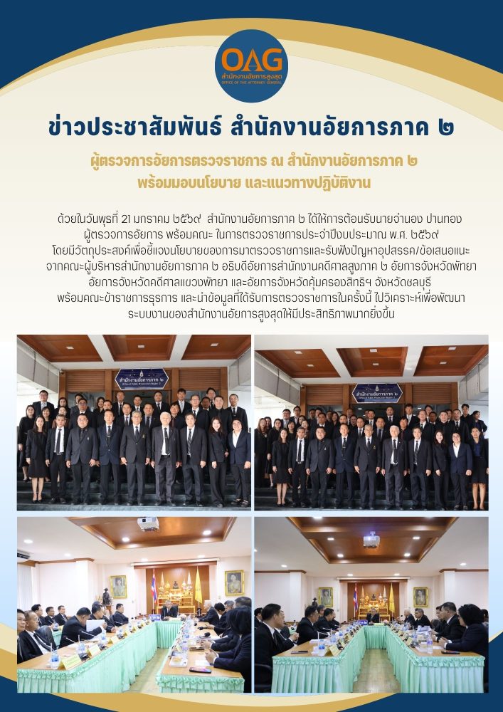 ด้วยในวันพุธที่ 8 มกราคม 2568 คณะผู้บริหาร และข้าราชการฝ่ายอัยการสำนักงานอัยการภาค 2