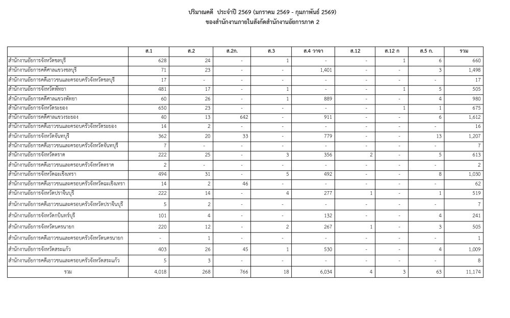 (๒) สำนักงานคดีศาลสูงภาค ๒ ประกอบด้วย