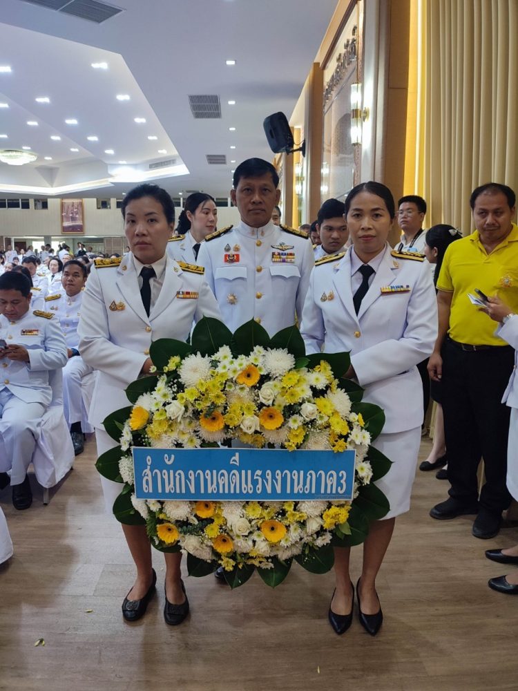 วันอาทิตย์ที่ 13 ตุลาคม 2567 เวลา 08.00 น. นายบัณฑิต สิรยานนท์ อัยการพิเศษฝ่ายคดีแรงงานภาค 3 สำนักงานคดีแรงงานภาค 3 พร้อมด้วยข้าราชการฝ่ายอัยการ ได้เข้าร่วมพิธีวางพวงมาลา ณ หอประชุมเปรมติณสูลานนท์ ศาลากลางจังหวัดนครราชสีมา