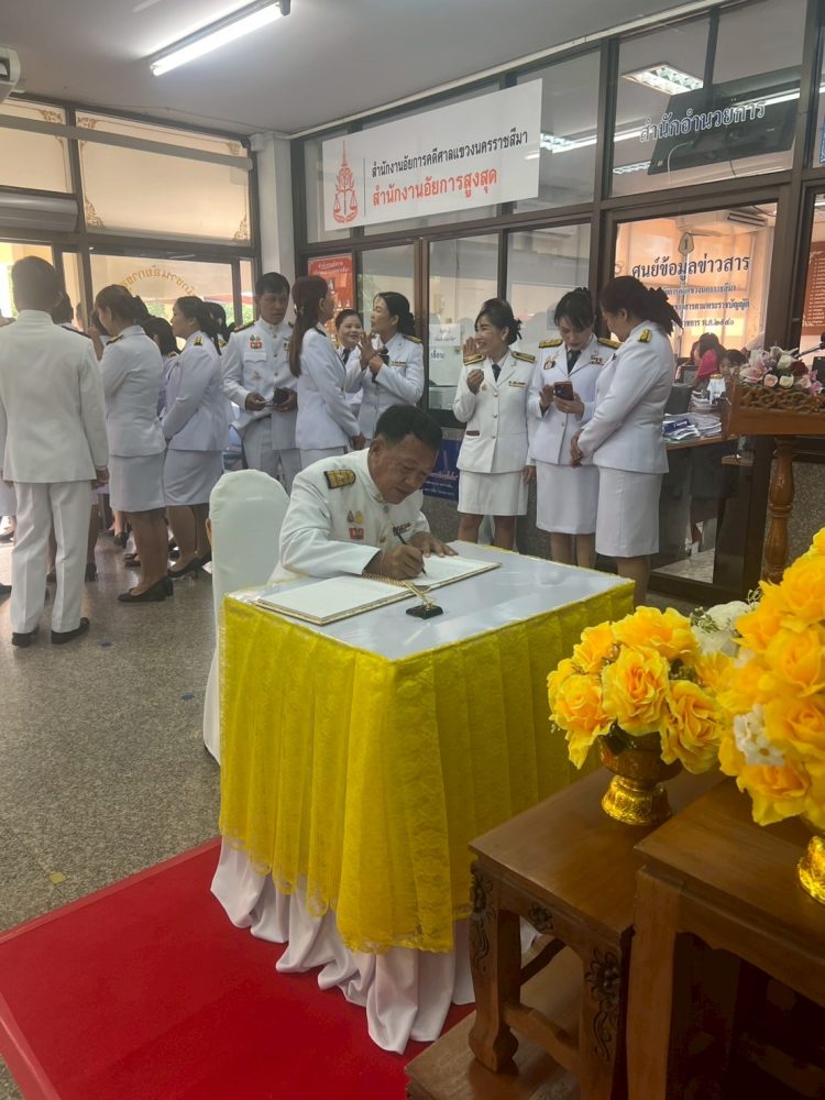 วันที่ 15 กรกฎาคม 2568 เวลา 09.00 น. นายบัณฑิต สิรยานนท์ อัยการพิเศษฝ่ายคดีแรงงานภาค 3 สำนักงานคดีแรงงานภาค 3 ปฏิบัติหน้าที่อัยการสำนักงานคดีแรงงานภาค 3 พร้อมด้วยข้าราชการฝ่ายอัยการ ได้เข้าร่วมพิธีลงนามถวายพระพรชัยมงคลเฉลิมพระเกียรติพระบาทสมเด็จพระเจ้าอยู่หัว เนื่องในโอกาสวันเฉลิมพระชนมพรรษา 28 กรกฎาคม 2568 และพิธีถวายสัตย์ปฏิญาณเพื่อเป็นข้าราชการที่ดี และพลังของแผ่นดิน ประจำปี 2568 ณ บริเวณห้องโถงชั้น 1 อาคารสำนักงานอัยการภาค 3
