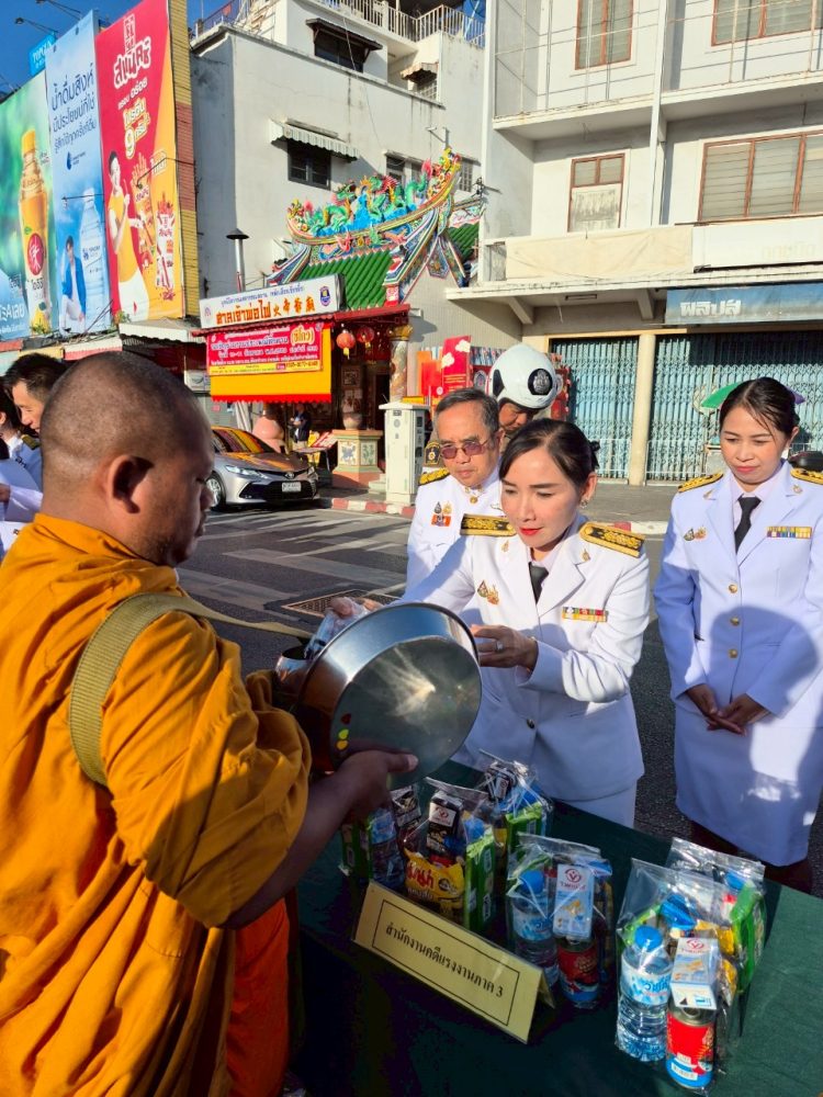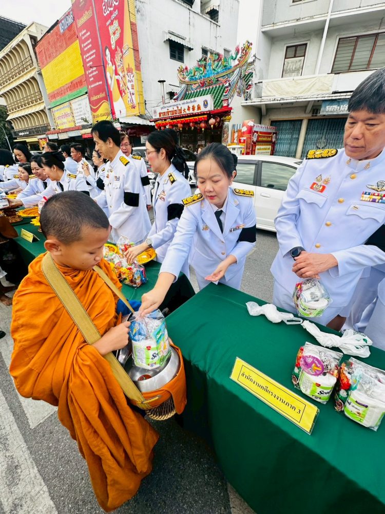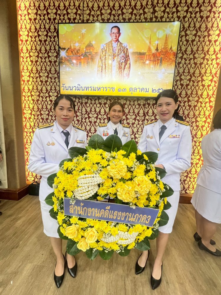 วันจันทร์ที่ 13 ตุลาคม 2568 เวลา 06.00 น. นางสาวกัญญาพัชร เกียรติแสวงสิงห์ อัยการพิเศษฝ่ายคดีแพ่งภาค 3 สำนักงานคดีแรงงานภาค 3 ปฏิบัติหน้าที่อัยการสำนักงานคดีแรงงานภาค 3 พร้อมด้วยข้าราชการฝ่ายอัยการ เข้าร่วมกิจกรรมเนื่องในวันนวมินทรมหาราช พิธีเจริญพระพุทธมนต์และพิธีทำบุญตักบาตรถวายพระราชกุศล (ข้าวสารอาหารแห้ง) ณ บริเวณลานอนุสาวรีย์ท้าวสุรนารี และเวลา 08.00 น. พิธีวางพวงมาลาถวายราชสักการะ ณ หอประชุมเปรมติณสูลานนท์ ศาลากลางจังหวัดนครราชสีมา