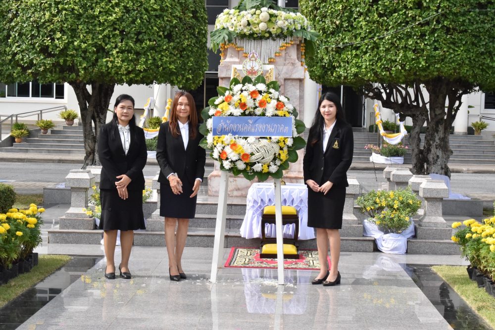 วันที่ 23 ตุลาคม 2565 เวลาประมาณ 06.30 น. นางสาวฐาณภัค สวงโท อัยการผู้เชี่ยวชาญพิเศษ ปฏิบัติหน้าที่อัยการสำนักงานคดีแรงงานภาค 3 (นครราชสีมา) พร้อมด้วยข้าราชการฝ่ายอัยการ เข้าร่วมพิธีวางพวงมาลาถวายราชสักการะ เนื่องในวันคล้ายวันสวรรคต พระบาทสมเด็จพระจุลจอมเกล้าเจ้าอยู่หัว ณ สนามหน้าศาลากลางจังหวัดนครราชสีมา