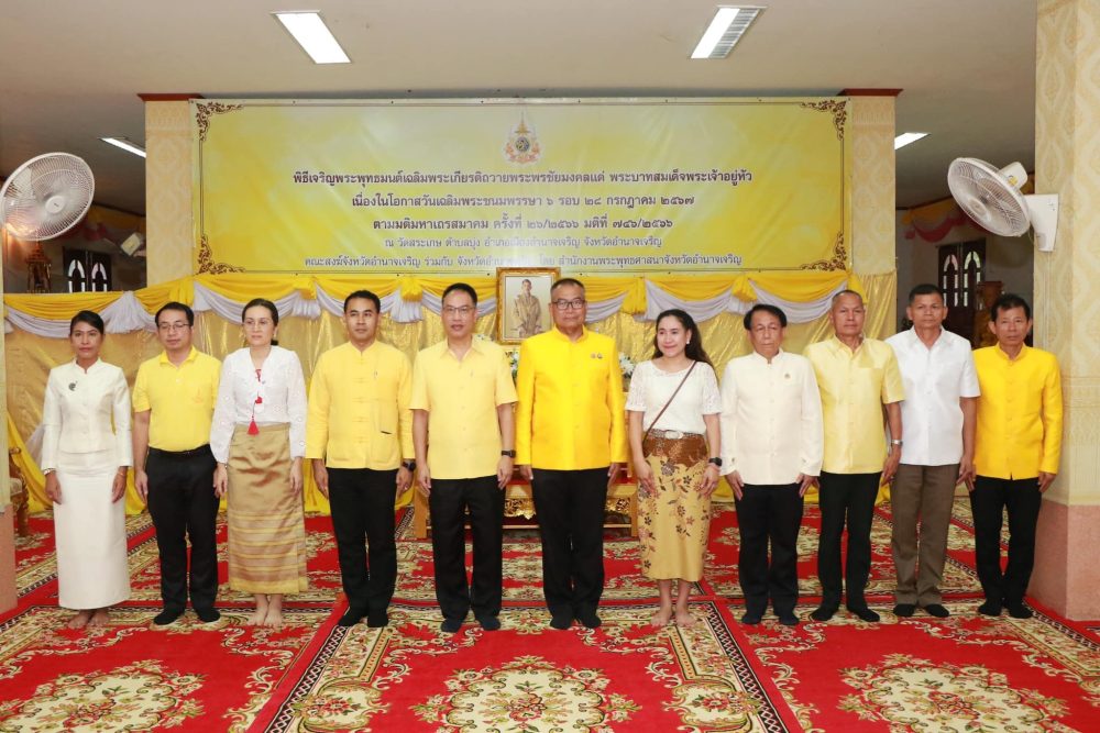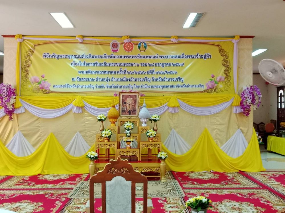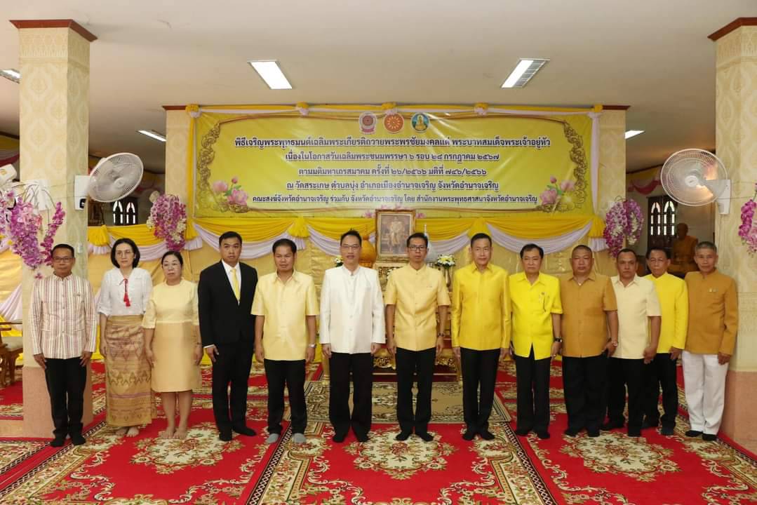 ถวายพระราชกุศล และพิธีทางศาสนามหามงคล เนื่องในโอกาสวันเฉลิมพระชนมพรรษา 28 กรกฎาคม 2568 ณ หอประชุมจังหวัดอำนาจเจริญ สวนเฉลิมพระเกียรติฯ 80 พรรษา อำเภอเมืองอำนาจเจริญ จังหวัดอำนาจเจริญ