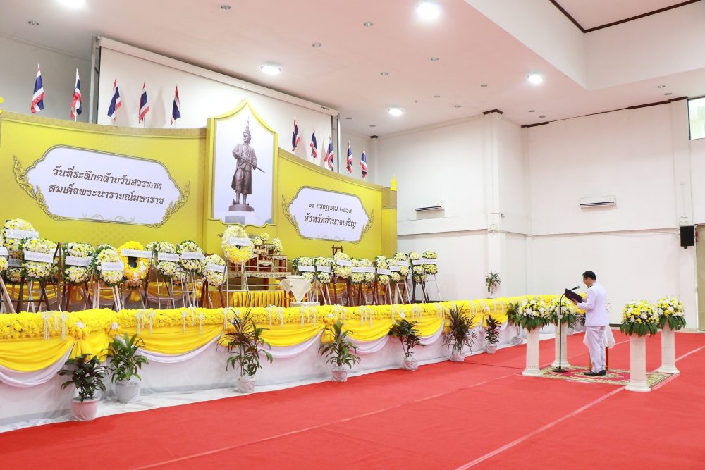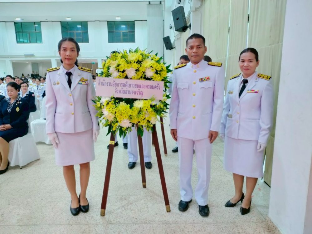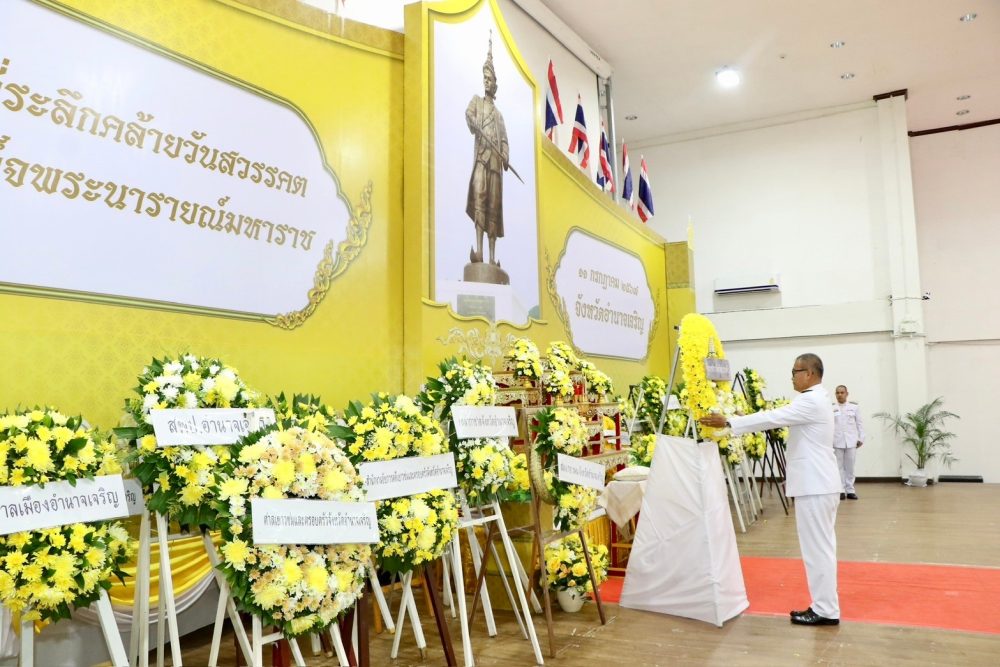 วันที่ 11 กรกฎาคม 2566 นายสุกฤษ เดชะทัตตานนท์ อัยการจังหวัดคดีเยาวชนและครอบครัวจังหวัดอำนาจเจริญ มอบหมายให้นางสาวพิมพ์ลภัสช์ เย็นใส อัยการผู้ช่วย เข้าร่วมพิธีวางพวงมาลาถวายราชสักการะต่อหน้าพระบรมสาทิสลักษณ์ สมเด็จพระนารายณ์มหาราช เพื่อสดุดีเทิดพระเกียรติในวันคล้ายวันสวรรคต ณ หอประชุมพญานาครินทร์ ศาลากลางจังหวัดอำนาจเจริญ ตำบลโนนหนามแท่ง อำเภอเมืองอำนาจเจริญ จังหวัดอำนาจเจริญ