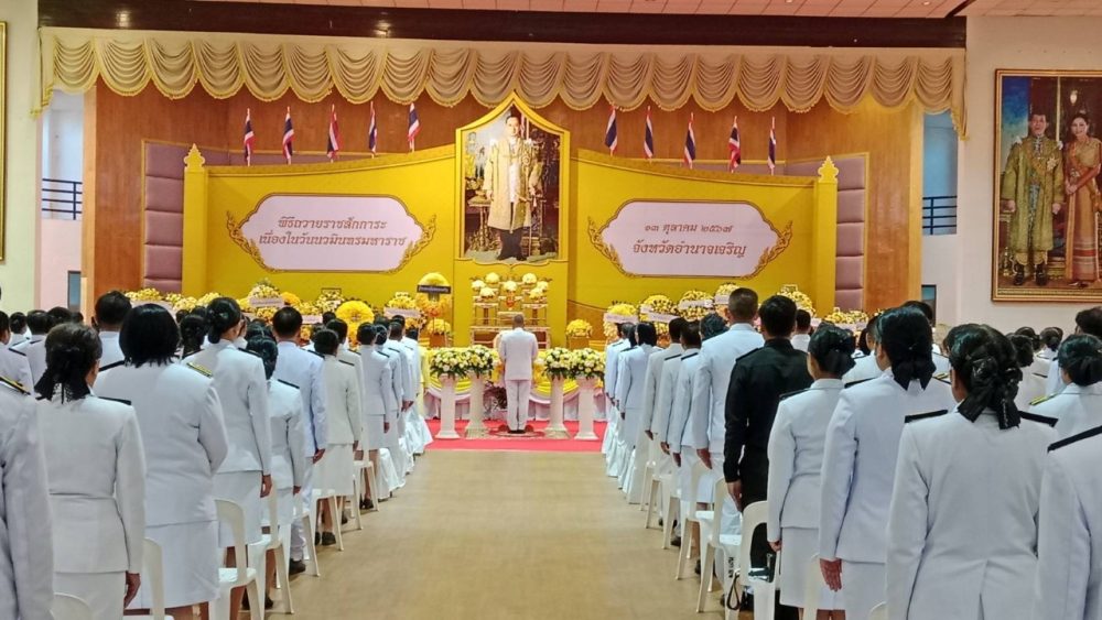 วันที่ 23 ตุลาคม 2568 เวลา 08.00 น. นายพลายพล ขุมทอง อัยการจังหวัดคดีเยาวชนและครอบครัวจังหวัดอำนาจเจริญ มอบหมายให้ นายจตุพร ขาวเผือก อัยการจังหวัดประจำสำนักงานอัยการสูงสุด พร้อมข้าราชการฝ่ายอัยการและบุคคลากร ร่วมวางพวงมาลาถวายสักการะถวายราชสักการะเนื่องในวันปิยมหาราช ประจำปี 2568 ณ พระบรมราชานุสาวรีย์พระบาทสมเด็จพระจุลจอมเกล้าเจ้าอยู่หัว บริเวณด้านหน้าศาลากลางจังหวัดอำนาจเจริญ เพื่อน้อมรำลึกถึงพระมหากรุณาธิคุณและแสดงความจงรักภักดีต่อพระองค์ผู้ทรงเป็นที่รักยิ่งของปวงชนชาวไทย