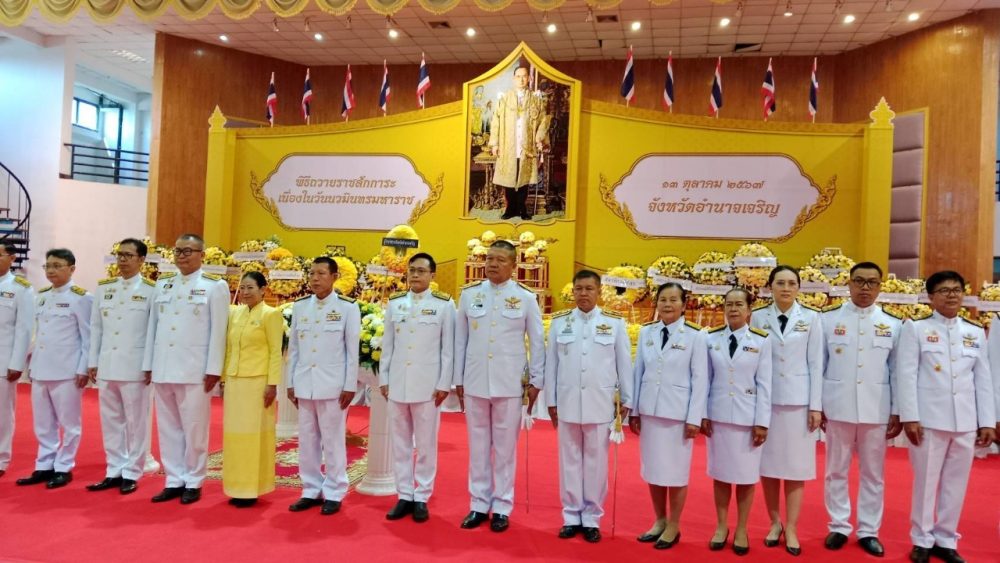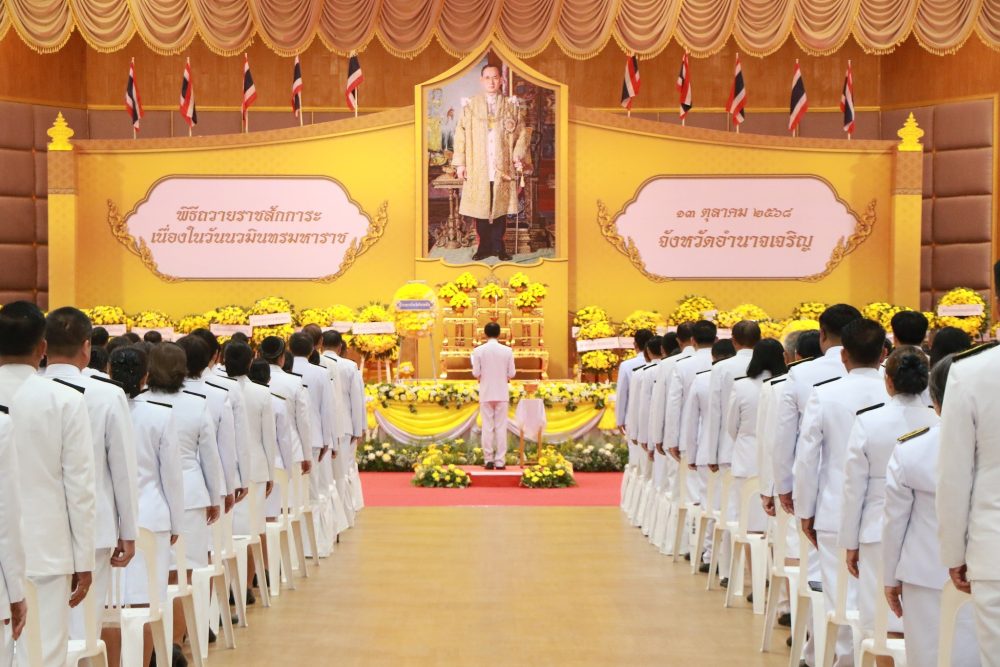 วันที่ 13 ตุลาคม 2568 เวลา 08.15 น. นายพลายพล ขุมทอง อัยการจังหวัดคดีเยาวชนและครอบครัวจังหวัดอำนาจเจริญ พร้อมข้าราชการฝ่ายอัยการและบุคคลากร เข้าร่วมงานพิธีวางพวงมาลาและถวายราชสดุดีเนื่องในวันนวมินทรมหาราช วันคล้ายวันสวรรคตของพระบาทสมเด็จพระบรมชนกาธิเบศร มหาภูมิพลอดุลยเดชมหาราช บรมนาถบพิตร ณ หอประชุมพญานาครินทร์ ศาลากลางจังหวัดอำนาจเจริญ ตำบลโนนหนามแท่ง อำเภอเมืองอำนาจเจริญ จังหวัดอำนาจเจริญ พิธีจัดขึ้นเพื่อแสดงความจงรักภักดีและน้อมรำลึกในพระมหากรุณาธิคุณอันหาที่สุดมิได้