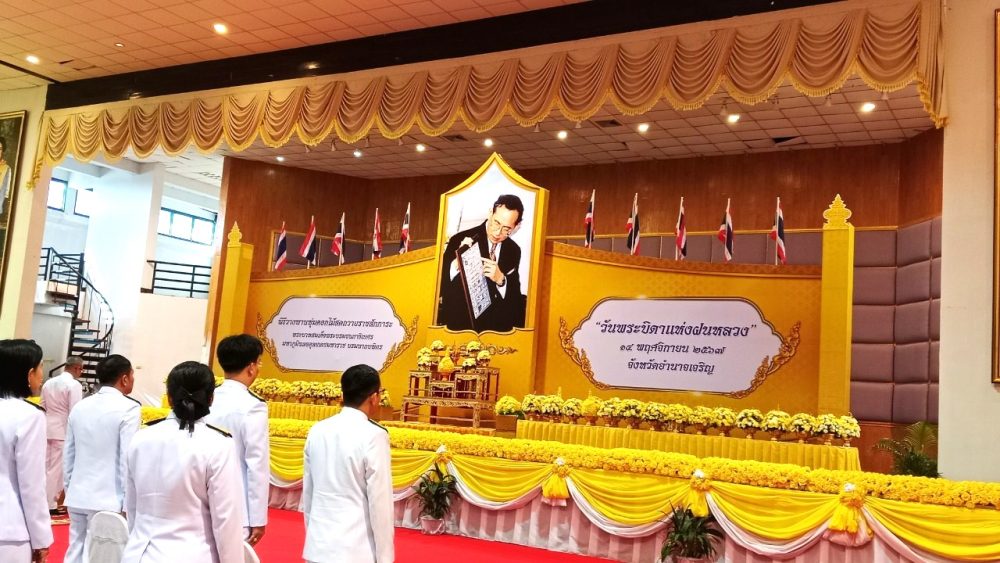 วันที่ 14 พฤศจิกายน 2568 เวลา 07.30 น. นายพลายพล ขุมทอง อัยการจังหวัดคดีเยาวชนและครอบครัวจังหวัดอำนาจเจริญ พร้อมข้าราชการฝ่ายอัยการและบุคคลากร เข้าร่วมวางพานพุ่มดอกไม้สด ถวายราชสักการะพระบาทสมเด็จพระบรมชนกาธิเบศร มหาภูมิพลอดุลยเดชมหาราช บรมนาถบพิตร เนื่องในวันพระบิดาแห่งฝนหลวง ประจำปี 2568 เพื่อน้อมรำลึกในพระมหากรุณาธิคุณ ณ หอประชุมพญานาครินทร์ ศาลากลางจังหวัดอำนาจเจริญ