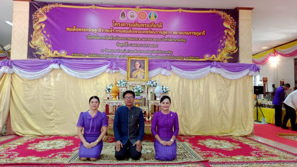 วันที่ 7 เมษายน 2566 นายสุกฤษ เดชะทัตตานนท์ อัยการจังหวัดคดีเยาวชนและครอบครัวจังหวัดอำนาจเจริญ พร้อมข้าราชการฝ่ายอัยการและบุคลากร ร่วมพิธีเฉลิมพระเกียรติสมเด็จพระกนิษฐาธิราชเจ้า กรมสมเด็จพระเทพรัตนราชสุดาฯ สยามบรมราชกุมารี เนื่องในโอกาสวันคล้ายวันพระราชสมภพ 2 เมษายน 2566 ณ วัดสระเกษ ตำบลบุ่ง อำเภอเมือง จังหวัดอำนาจเจริญ