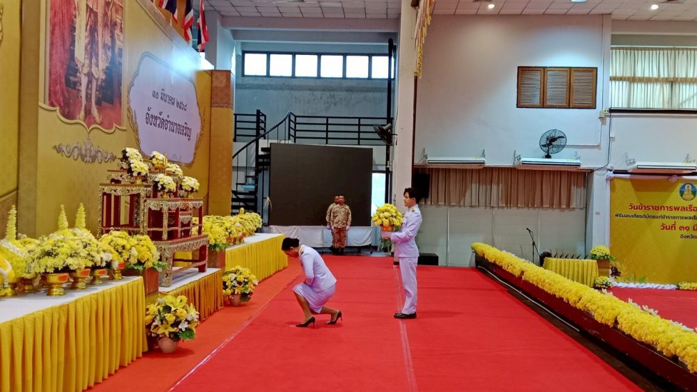 วันที่ 6 เมษายน 2566 นายสุกฤษ เดชะทัตตานนท์ อัยการจังหวัดคดีเยาวชนและครอบครัวจังหวัดอำนาจเจริญ มอบหมายให้ นางสาวพิมพ์ลภัสช์ เย็นใส อัยการผู้ช่วย พร้อมข้าราชการฝ่ายอัยการและบุคลากร ร่วมพิธีวางพานพุ่มดอกไม้สด ถวายราชสักการะพระบรมสาทิสลักษณ์ พระบาทสมเด็จพระพุทธยอดฟ้าจุฬาโลกมหาราช เนื่องในวันพระบาทสมเด็จพระพุทธยอดฟ้าจุฬาโลกมหาราช และวันที่ระลึกมหาจักรีบรมราชวงศ์ ณ หอประชุมพญานาครินทร์ ศาลากลางจังหวัดอำนาจเจริญ