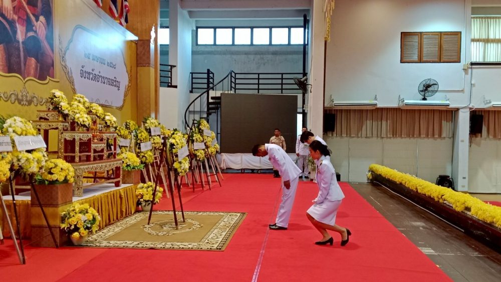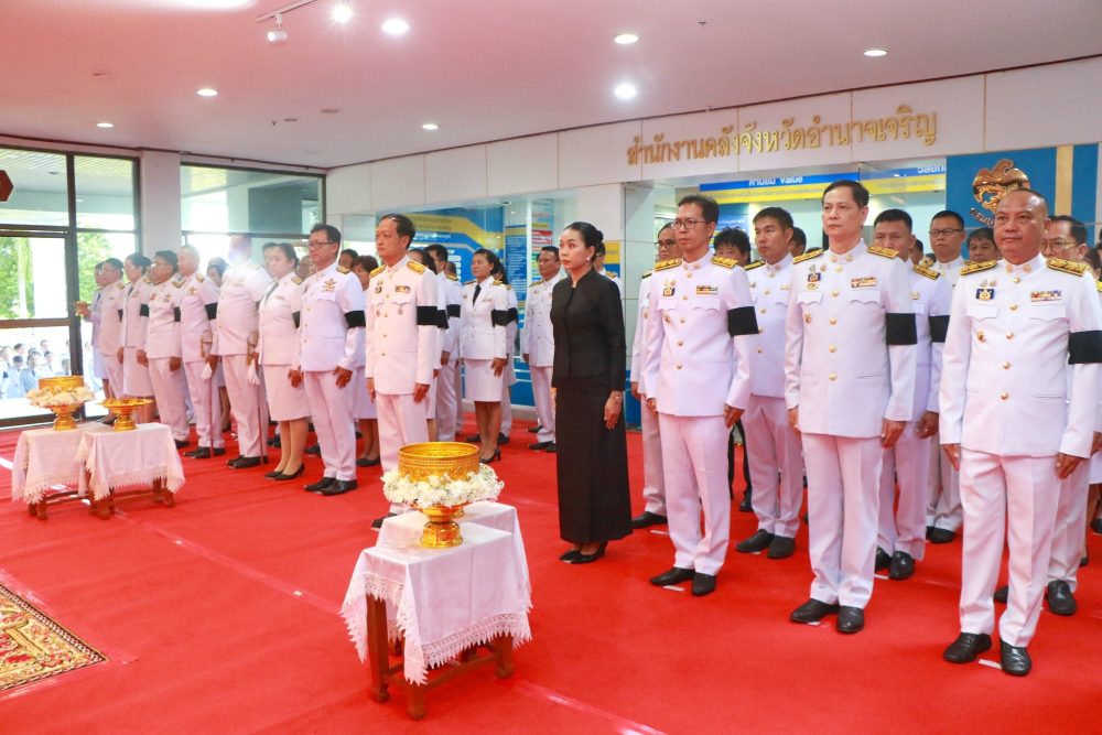 และบุคลากร ร่วมถวายน้ำสรงพระบรมศพ สมเด็จพระนางเจ้าสิริกิติ์ พระบรมราชินีนาถ พระบรมราชชนนีพันปีหลวง เพื่อร่วมแสดงความจงรักภักดีและถวายความอาลัยและน้อมรำลึกในพระมหากรุณาธิคุณอันหาที่สุดมิได้โดยมี คณะตุลาการ อัยการ ทหาร ตำรวจ หัวหน้าส่วนราชการ ภาครัฐ ภาคเอกชน รัฐวิสาหกิจ องค์กรปกครองส่วนท้องถิ่น จิตอาสาพระราชทาน และประชาชนทุกหมู่เหล่า ต่างพร้อมใจกันเดินทางมาด้วยความสงบ สำรวม เพื่อร่วมถวายน้ำสรงพระบรมศพ และลงนามแสดงความไว้อาลัยเบื้องหน้าพระฉายาลักษณ์ สมเด็จพระนางเจ้าสิริกิติ์ พระบรมราชินีนาถ พระบรมราชชนนีพันปีหลวง แสดงออกถึงความจงรักภักดีและสำนึกในพระมหากรุณาธิคุณที่ทรงอุทิศพระวรกายในการทำงานอย่างหนักตลอดพระชนม์ชีพเพื่อปวงชนชาวไทย ณ บริเวณห้องโถงชั้นล่าง ศาลากลางจังหวัดอำนาจเจริญ