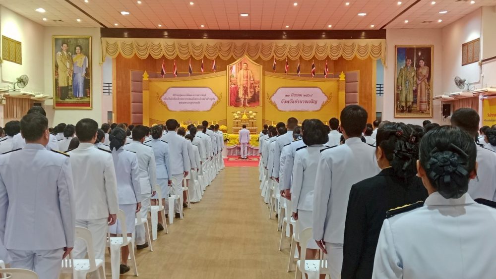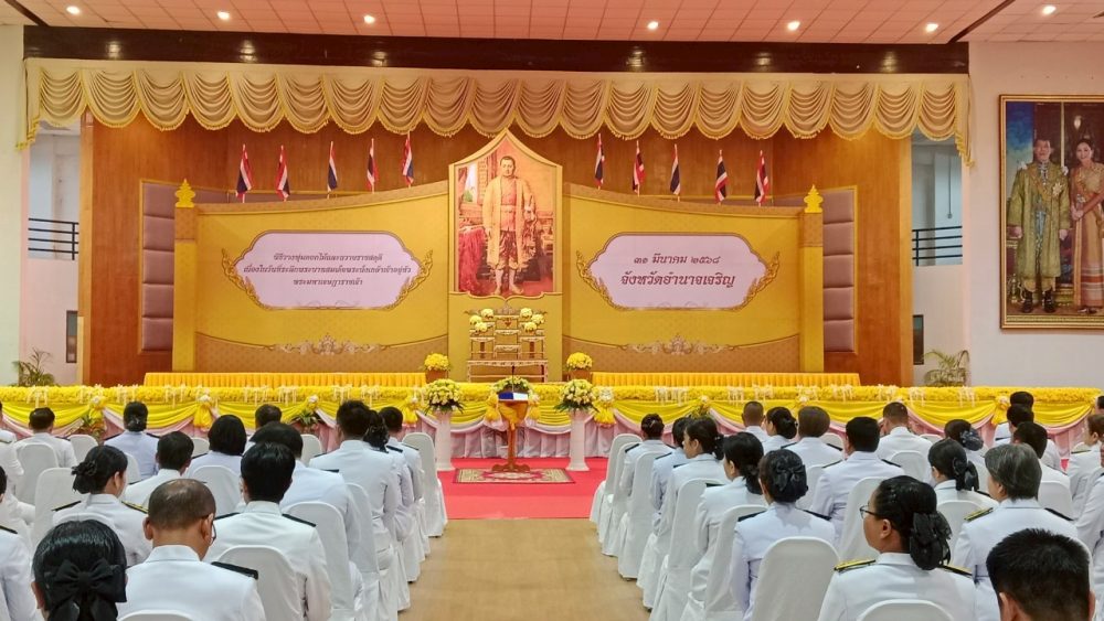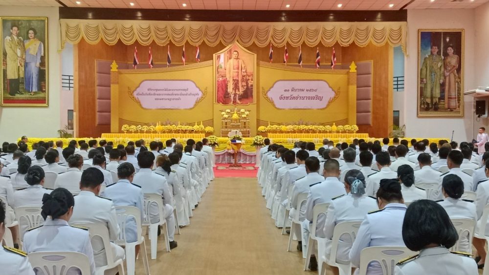 วันที่ 24 กรกฎาคม 2568 เวลา 10.00 น. สำนักงานอัยการคดีเยาวชนและครอบครัวจังหวัดอำนาจเจริญ สำนักงานอัยการจังหวัดอำนาจเจริญ ฝ่ายสนับสนุนงานศาลสูงจังหวัดอำนาจเจริญ และสำนักงานอัยการจังหวัดคุ้มครองสิทธิและช่วยเหลือทางกฎหมายและการบังคับคดีจังหวัดอำนาจเจริญ ร่วมกันจัดกิจกรรมเฉลิมพระเกียรติพระบาทสมเด็จพระเจ้าอยู่หัว พิธีถวายพระพรชัยมงคลพระบาทสมเด็จพระเจ้าอยู่หัวและพิธีถวายสัตย์ปฏิญาณเพื่อเป็นข้าราชการที่ดีและพลังของแผ่นดิน เนื่องในโอกาสวันเฉลิมพระชนมพรรษา 28 กรกฎาคม 2568 ณ บริเวณอาคารสำนักงานอัยการจังหวัดอำนาจเจริญ ตำบลบุ่ง อำเภอเมืองอำนาจเจริญ จังหวัดอำนาจเจริญ