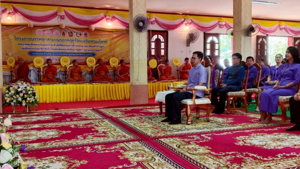 วันที่ 25 กรกฎาคม 2568 เวลา 13.40 น. นายพลายพล ขุมทอง อัยการจังหวัดคดีเยาวชนและครอบครัวจังหวัดอำนาจเจริญ มอบหมายให้ นางเยาวลักษณ์ อุ่นใจ ผู้อำนวยการสำนักอำนวยการ เข้าร่วมพิธีเจริญพระพุทธมนต์เฉลิมพระเกียรติ ถวายพระพรชัยมงคลแด่พระบาทสมเด็จพระเจ้าอยู่หัวและพระบรมวงศานุวงศ์ ณ วัดสำราญนิเวศ ตำบลบุ่ง อำเภอเมืองอำนาจเจริญ จังหวัดอำนาจเจริญ เพื่อแสดงออกถึงความจงรักภักดี ต่อสถาบันชาติ ศาสนา และพระมหากษัตริย์ อีกทั้งเพื่อเป็นการทำนุบำรุงพระศาสนา ให้พุทธศาสนิกชนเข้าวัด ปฏิบัติธรรม เจริญจิตภาวนา และนำหลักธรรมจากบทสวดเจริญพระพุทธมนต์มาประพฤติปฏิบัติในชีวิตประจำวัน