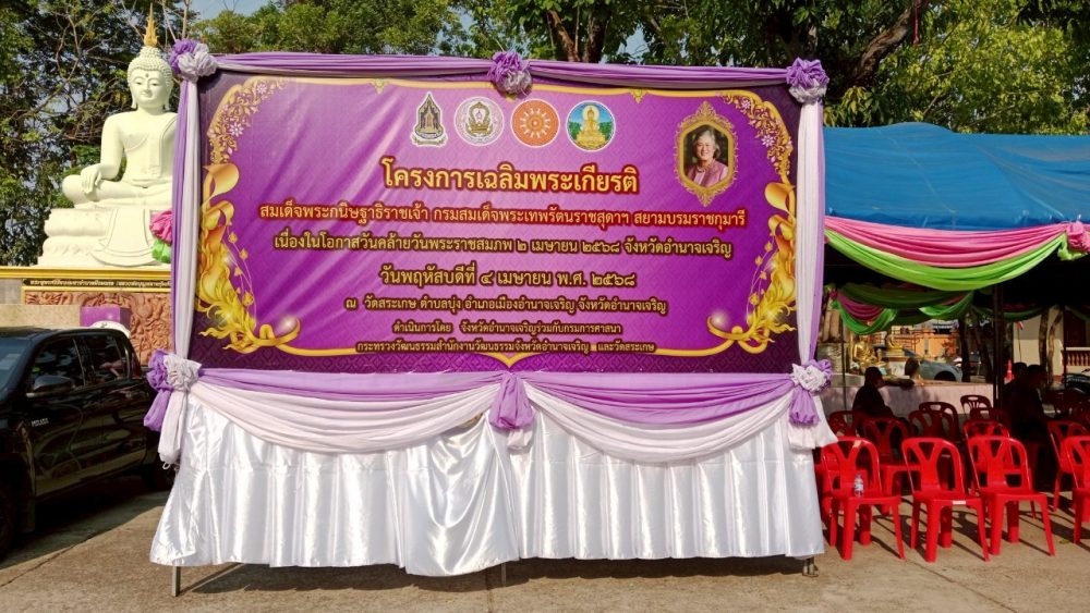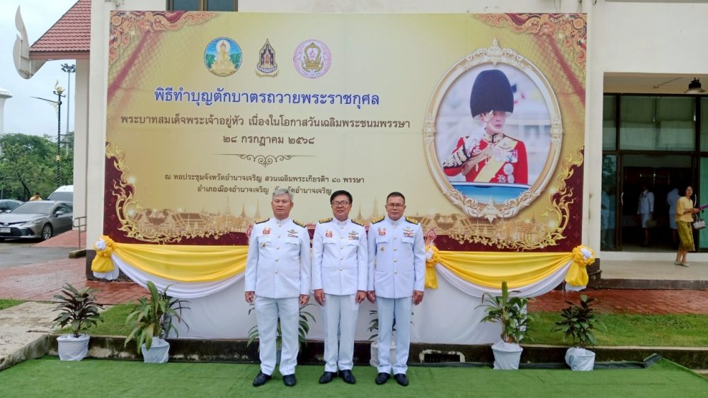 ถวายพระราชกุศล เนื่องในโอกาสวันเฉลิมพระชนมพรรษา 12 สิงหาคม 2568 ณ หอประชุมจังหวัดอำนาจเจริญ สวนเฉลิมพระเกียรติฯ 80 พรรษา อำเภอเมืองอำนาจเจริญ จังหวัดอำนาจเจริญ เพื่อแสดงออกถึงความจงรักภักดี น้อมรำลึกในพระมหากรุณาธิคุณของพระองค์ ที่ทรงปฏิบัติพระราชกรณียกิจนานัปการ เพื่อประโยชน์สุขของพสกนิกรชาวไทย