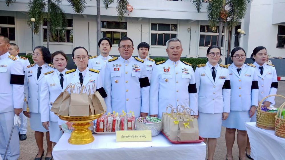 วันที่ 20 กันยายน 2568 เวลา 08.00 น. นายพลายพล ขุมทอง อัยการจังหวัดคดีเยาวชนและครอบครัวจังหวัดอำนาจเจริญ มอบหมายให้ นายจตุพร ขาวเผือก อัยการจังหวัดประจำสำนักงานอัยการสูงสุด พร้อมข้าราชการฝ่ายอัยการและบุคคลากร ร่วมพิธีเจริญพระพุทธมนต์และทำบุญตักบาตรถวายพระราชกุศล แด่พระบาทสมเด็จพระปรเมนทรมหาอานันทมหิดล พระอัฐมรามาธิบดินทร ณ หอประชุมพญานาครินทร์ ตำบลโนนหนามแท่ง อำเภอเมืองอำนาจเจริญ จังหวัดอำนาจเจริญ เนื่องในโอกาสวันคล้ายวันพระบรมราชสมภพครบ 100 ปี 20 กันยายน 2568 เพื่อเป็นการเทิดพระเกียรติและน้อมรำลึกในพระมหากรุณาธิคุณ ที่ทรงปฏิบัติพระราชกรณียกิจนานัปการ เพื่อประโยชน์สุขของพสกนิกรชาวไทย