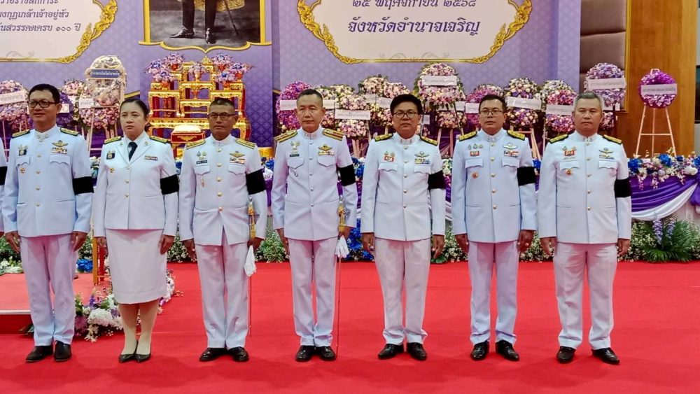 วันที่ 25 พฤศจิกายน 2568 เวลา 08.00 น. นายพลายพล ขุมทอง อัยการจังหวัดคดีเยาวชนและครอบครัวจังหวัดอำนาจเจริญ พร้อมข้าราชการฝ่ายอัยการและบุคคลากร เข้าร่วมพิธีวางพวงมาลาถวายราชสักการะสมเด็จพระมงกุฎเกล้าเจ้าอยู่หัว เนื่องในโอกาสวันคล้ายวันสวรรคตครบ 100 ปี 25 พฤศจิกายน 2568 เพื่อเป็นการแสดงออกถึงความจงรักภักดีและสำนึกในพระมหากรุณาธิคุณ ณ หอประชุมพญานาครินทร์ ศาลากลางจังหวัดอำนาจเจริญ