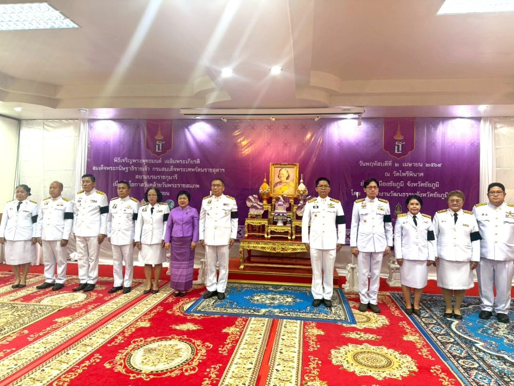 วันที่ 2 เมษายน 2569 เวลา 06.30 น. นายกำรัฐ ศรีโชติ อัยการจังหวัดคุ้มครองสิทธิ และช่วยเหลือทางกฎหมาย และการบังคับคดีจังหวัดชัยภูมิ พร้อมด้วยเจ้าหน้าที่สำนักงานอัยการคุ้มครองสิทธิฯ ร่วมพิธีเจริญพระพุทธมนต์เฉลิมพระเกียรติ สมเด็จพระกนิษฐาธิราชเจ้า กรมสมเด็จพระเทพรัตนราชสุดาฯ สยามบรมราชกุมารี เนื่องในโอกาสวันคล้ายวันพระราชสมภพ ๒ เมษายน ณ วัดไพรีพินาศ ตำบลในเมือง อำเภอเมืองชัยภูมิ จังหวัดชัยภูมิ