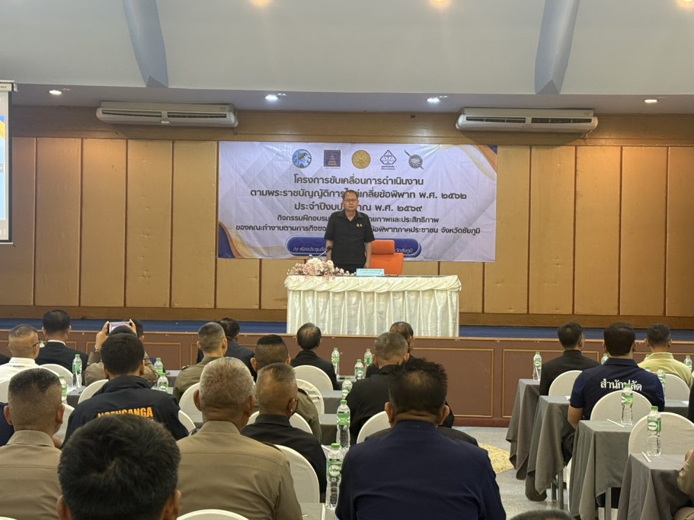 วันที่ 8 เมษายน 2569 เวลา 09.00 น. ร้อยตำรวจเอกหญิงวิรากร หอมเย็น รองอัยการจังหวัดคุ้มครองสิทธิ และช่วยเหลือทางกฎหมาย และการบังคับคดีจังหวัดชัยภูมิ พร้อมด้วยนางสาวอลิษา นุชพิเรนทร์ นิติกรชำนาญการ สำนักงานอัยการคุ้มครองสิทธิและช่วยเหลือทางกฎหมายและการบังคับคดี จังหวัดชัยภูมิ ร่วมโครงการขับเคลื่อนการดำเนินงานตามพระราชบัญญัติการไกล่เกลี่ยข้อพิพาท พ.ศ.2562 ประจำปีงบประมาณ พ.ศ. 2569″กิจกรรมฝึกอบรมการพัฒนาศักยภาพและประสิทธิภาพของคณะทำงานตามภารกิจของศูนย์โกล่เกลี่ยชื่อพิพาทภาคประชาชน จังหวัดชัยภูมิ”ณ ห้องประชุมลีลาวดี โรงแรมสยามริเวอร์รีสอร์ท อำเภอเมืองชัยภูมิ จังหวัดชัยภูมิ