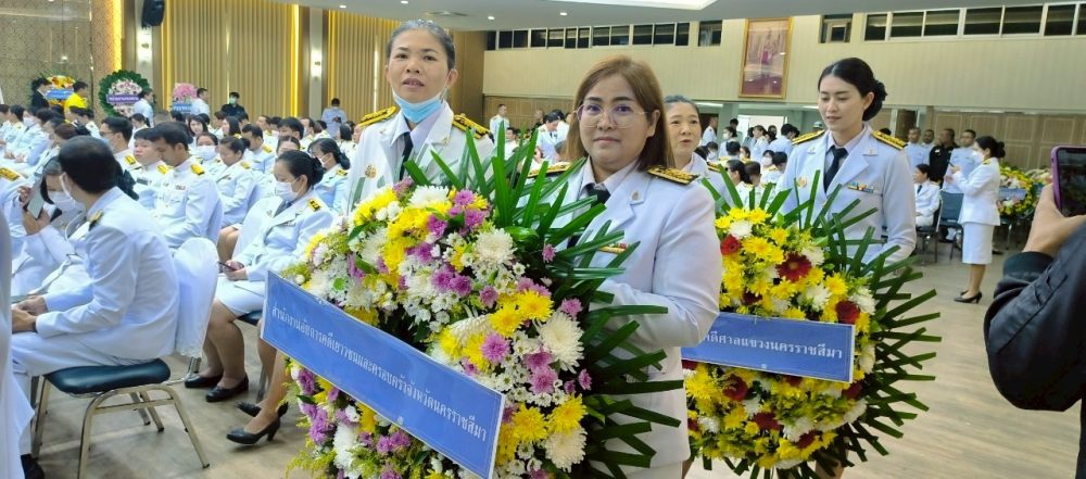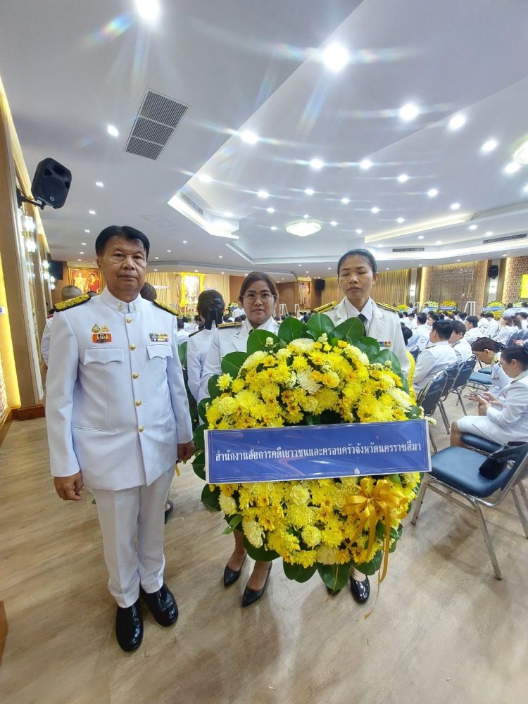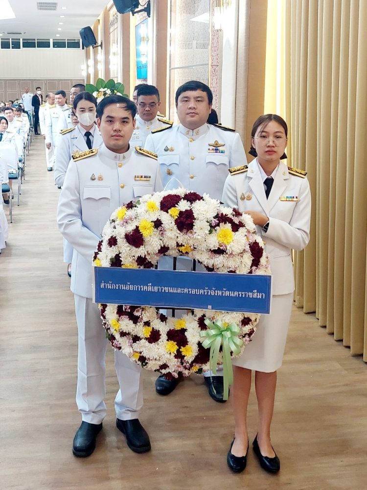 เวลา ๐๘.๑๕ นายเอกณรงค์ เฉิดพันธ์ รองอัยการจังหวัดคดีเยาวชนและครอบครัวจังหวัดนครราชสีมา และคณะร่วมพิธีวางพานพุ่มดอกไม้สดถวายราชสักการะ เบื้องหน้าพระบรมฉายาลักษณ์พระบาทสมเด็จพระบรมชนกาธิเบศร มหาภูมิพลอดุลยเดชมหาราช บรมนาถบพิตร ณ หอประชุมเปรมติณสูลานนท์ ศาลากลางจังหวัดนครราชสีมา จังหวัดนครราชสีมา