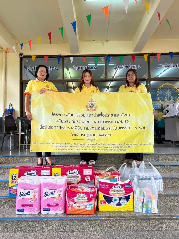 เมื่อวันที่ ๑๑ กรกฎาคม ๒๕๖๕ เวลา ๑๐.๐๐ นาฬิกา สำนักงานอัยการคดีเยาวชนและครอบครัวจังหวัดนครราชสีมา ร่วมกิจกรรมจิตอาสาบำเพ็ญสาธารณประโยชน์เพื่อเฉลิมพระเกียรติสมเด็จพระนางเจ้าฯ พระบรมราชินี เนื่องในโอกาสวันเฉลิมพระชนมพรรษา ๓ มิถุนายน ๒๕๖๕ โดยมอบสิ่งของที่จำเป็นต้องใช้ในชีวิตประจำวัน ให้แก่สถานสงเคราะห์คนชรา บ้านธรรมปกรณ์ (วัดม่วง) ซึ่งมีหญิงชราอยู่ในความดูแล จำนวน ๗๐ คน