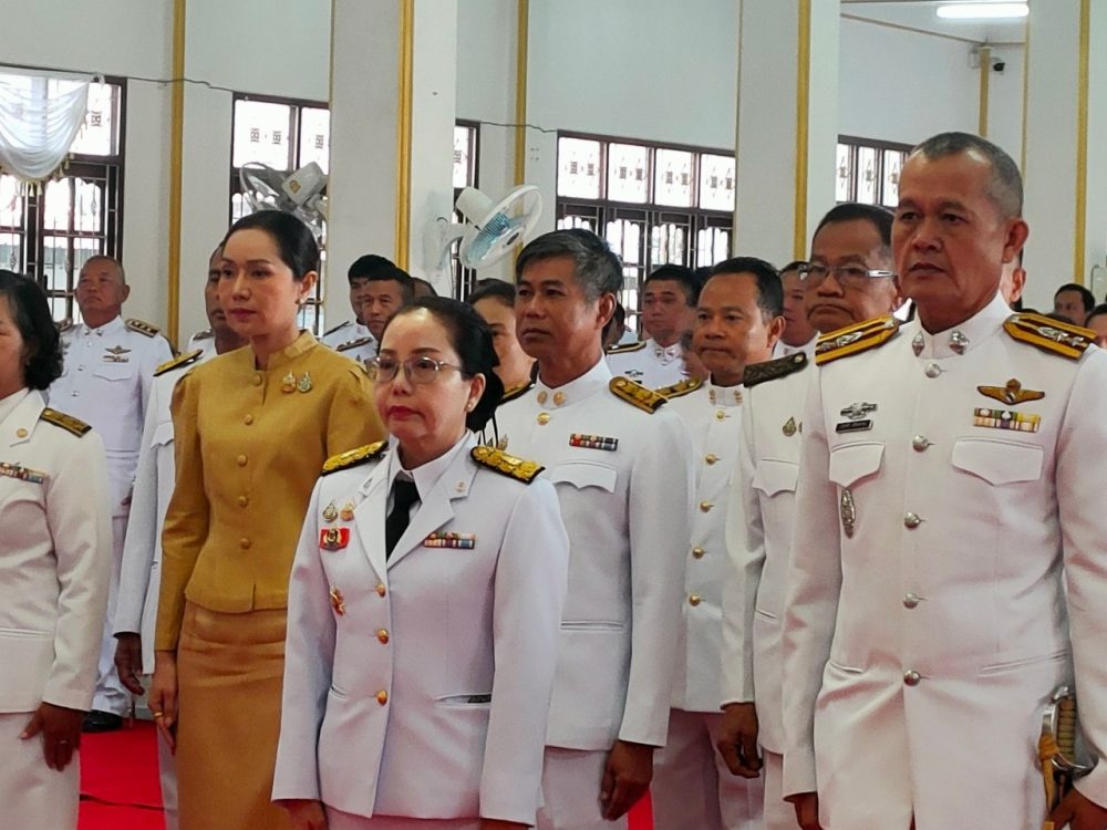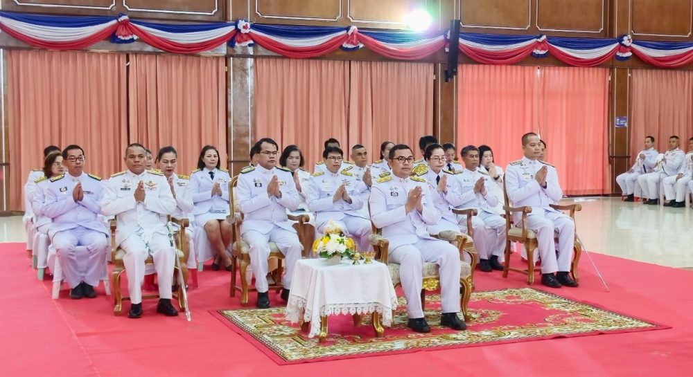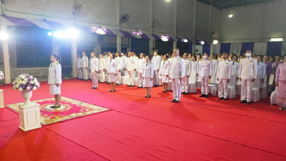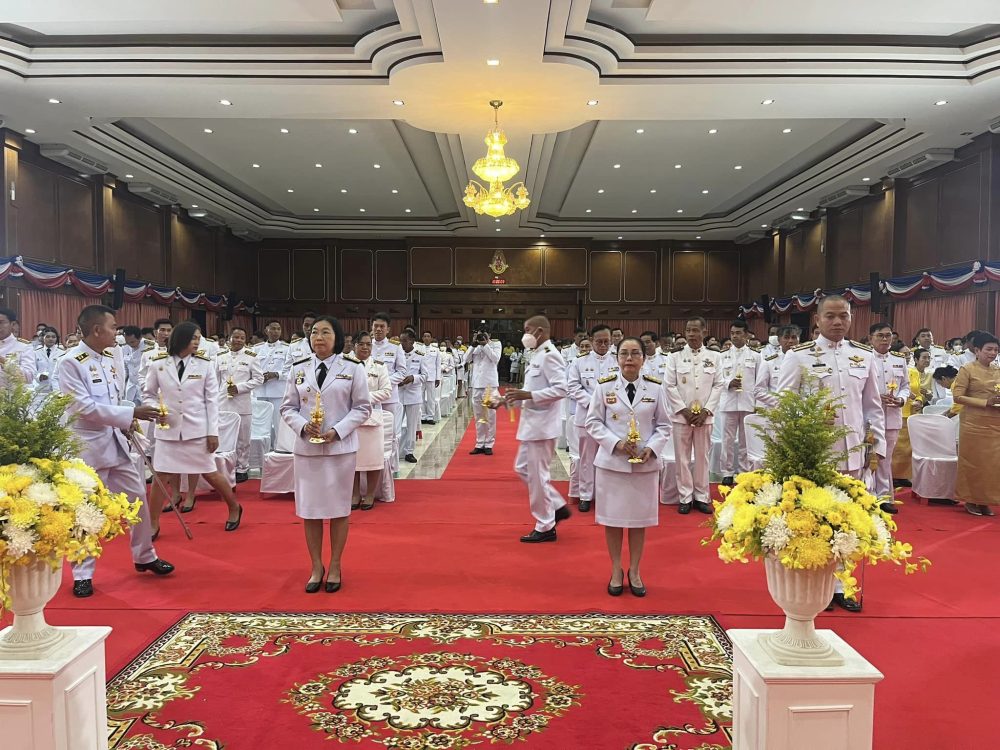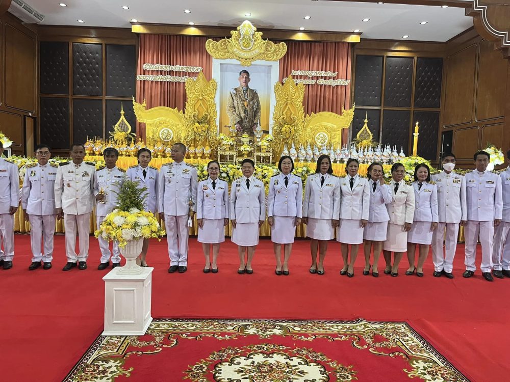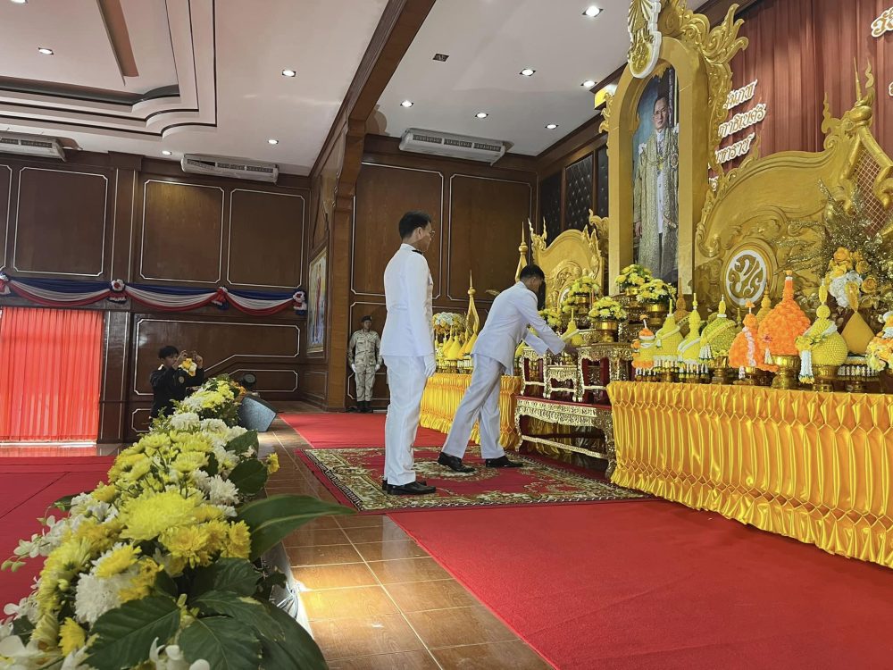 นายอินทราพร จันทร์สว่าง อัยการจังหวัดประจำสำนักงานอัยการสูงสุด พร้อมคณะ ร่วมพิธีถวายเครื่องราชสักการะและวางพานพุ่ม และพิธีจุดเทียนถวายพระพรชัยมงคล