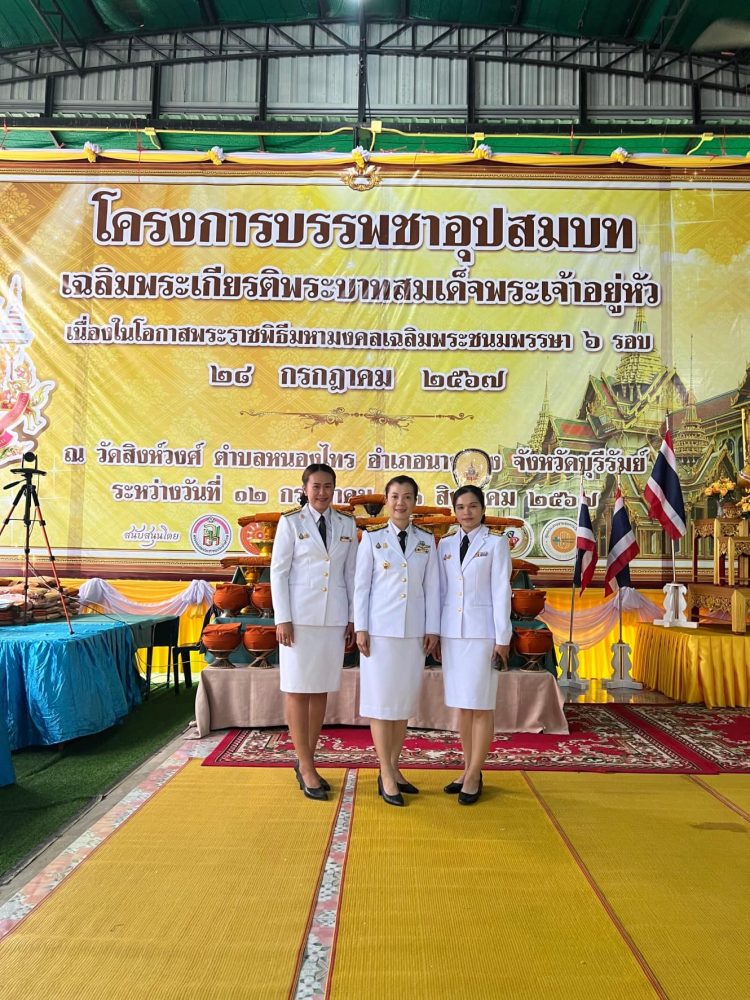 วันที่ 28 กรกฎาคม 2568 นางชุติมา คำนวน อัยการจังหวัดนางรอง พร้อมคณะ ร่วมพิธีเจริญพระพุทธมนต์ พิธีทำบุญตักบาตรถวายพระราชกุศล