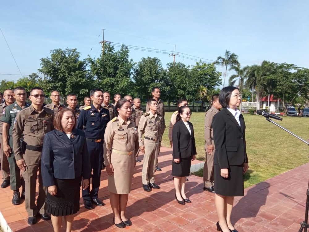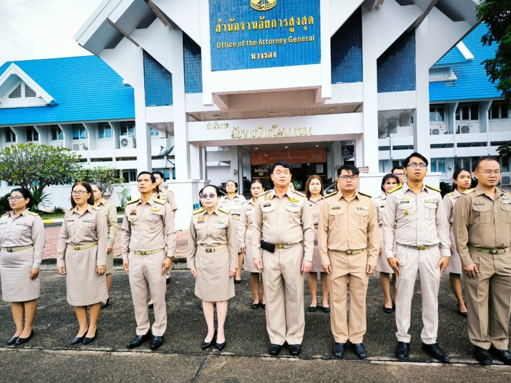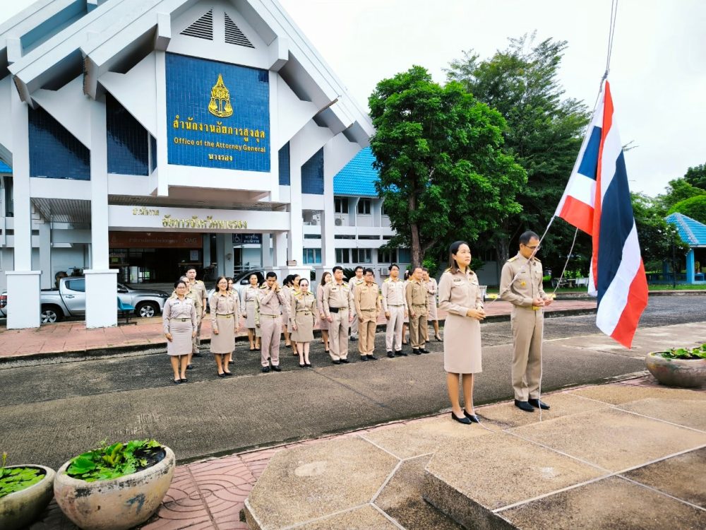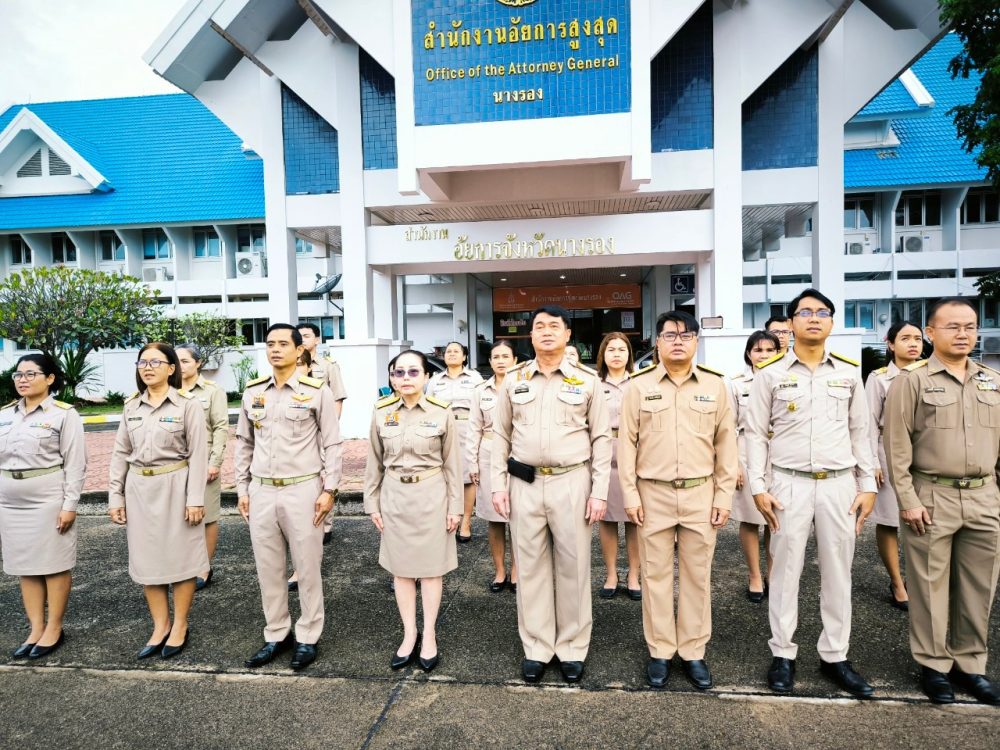 นำโดยนางชุติมา คำนวน อัยการจังหวัดนางรอง พร้อมข้าราชการอัยการและข้าราชการธุรการ ร่วมจัดกิจกรรมเคารพธงชาติและร้องเพลงชาติไทย เวลา 08.00 น.