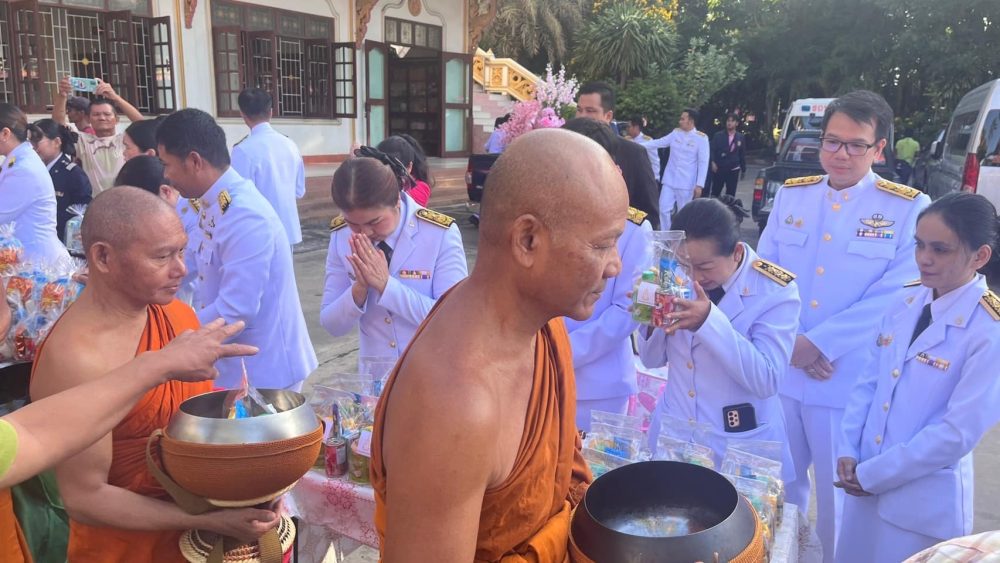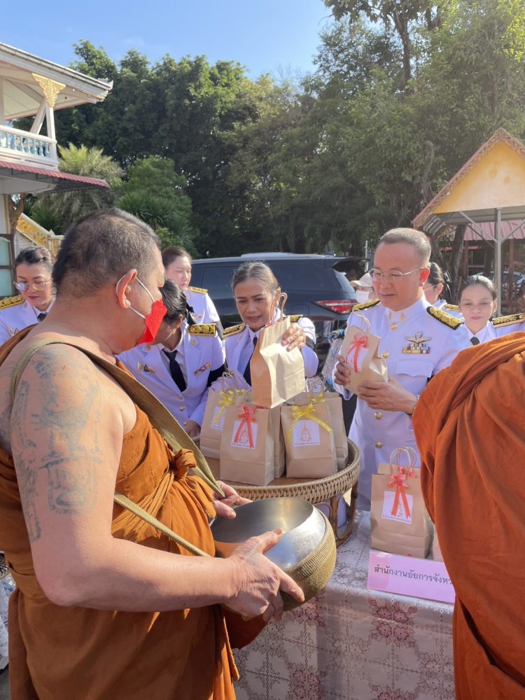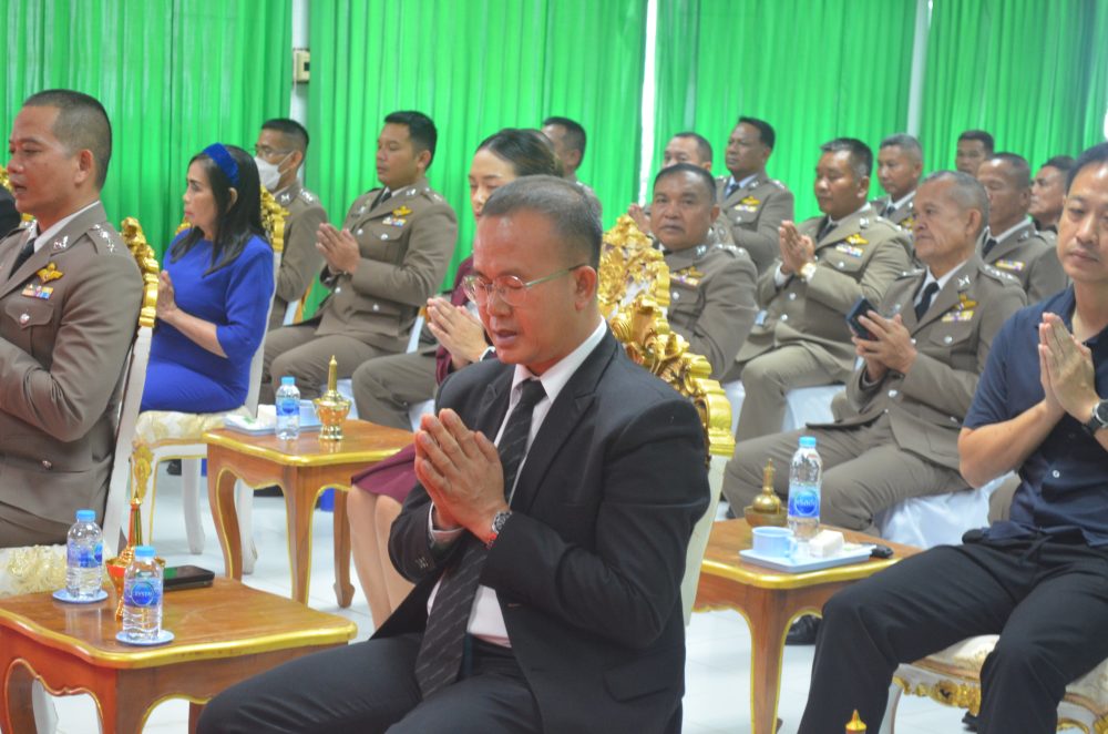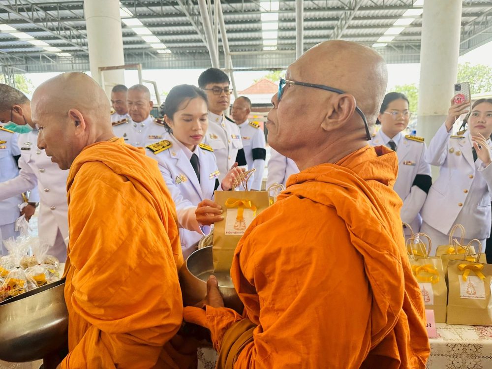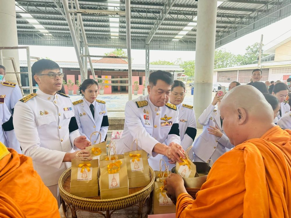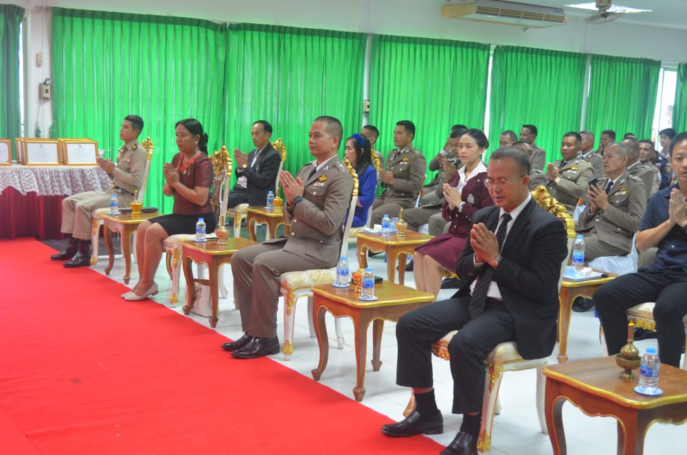 นายประภัส วงศ์ทิพากร รองอัยการจังหวัด พร้อมคณะ ร่วมพิธีสวดพระพุทธมนต์ พิธีทำบุญตักบาตรถวายพระราชกุศล
