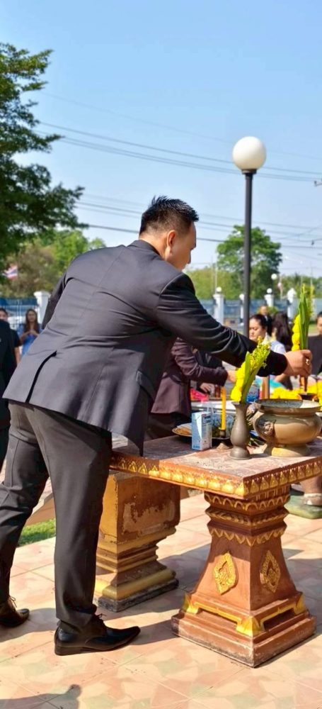 นายอาทร โปสายบุตร รองอัยการจังหวัด พร้อมคณะ ร่วมพิธีสวดพระพุทธมนต์ พิธีทำบุญตักบาตรถวายพระราชกุศล และพิธีวางพวงมาลาเนื่องในวันนวมินทรมหาราช