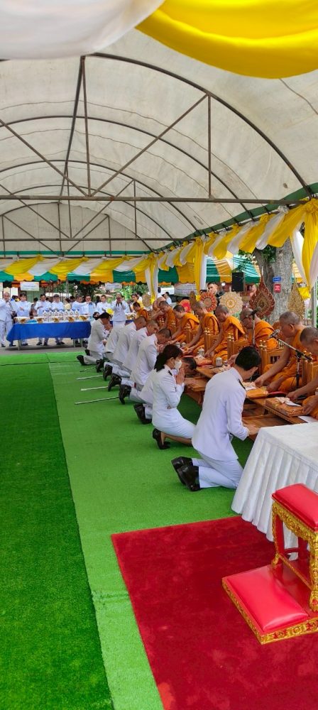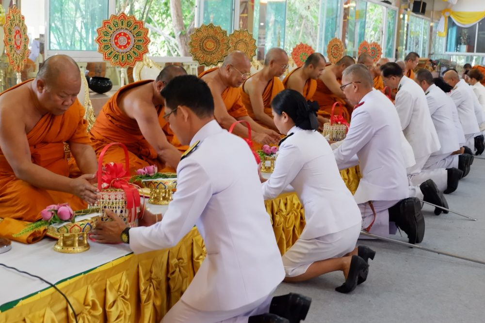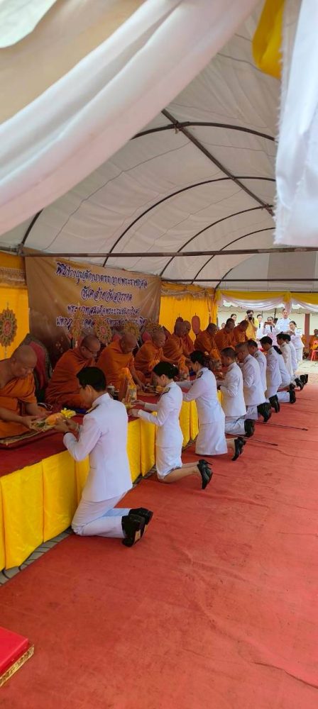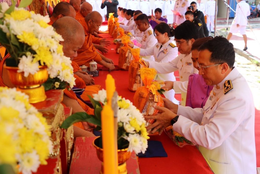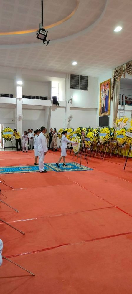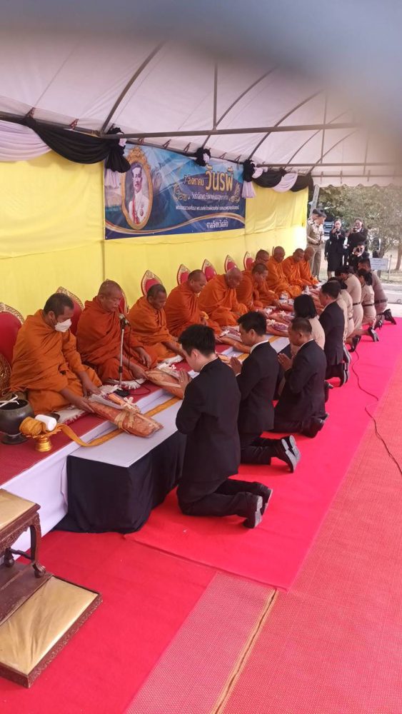และทำบุญตักบาตรถวายพระราชกุศล พิธีถวายเครื่องสักการะและวางพานพุ่ม