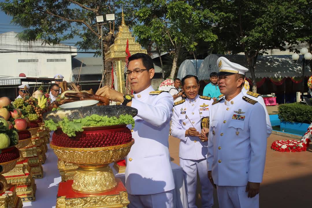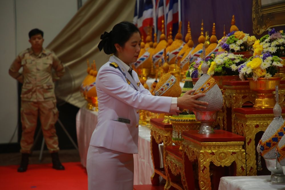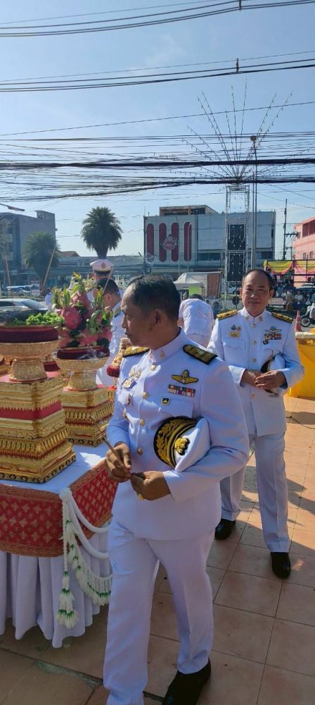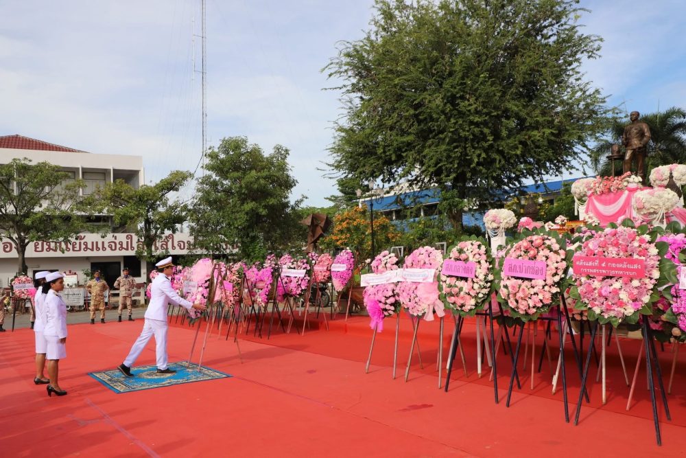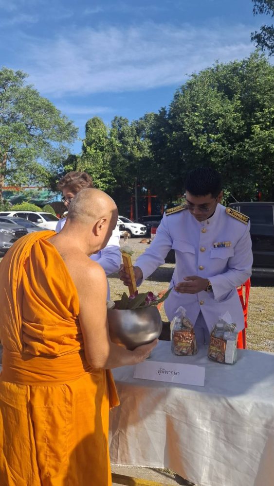 และทำบุญตักบาตรถวายพระราชกุศล พิธีถวายเครื่องสักการะและวางพานพุ่ม