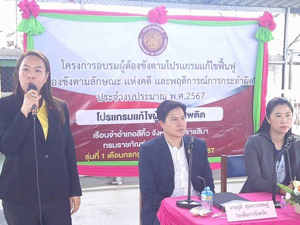 นางสาววงจันทร์ เหลืองเพชราภรณ์ อัยการจังหวัดสีคิ้ว(ปากช่อง) และคณะเข้าร่วมกิจกรรม เป็นวิทยากร โครงการอบรมผู้ต้องขังตามโปรแกรมแก้ไข้ฟื้นฟู ผู้ต้องขังตามลักษณะ แห่งคดี และพฤติการณ์การกระทำผิด ในวันที่ 31 กรกฎาคม 2567