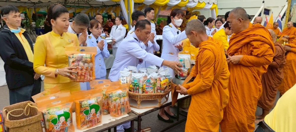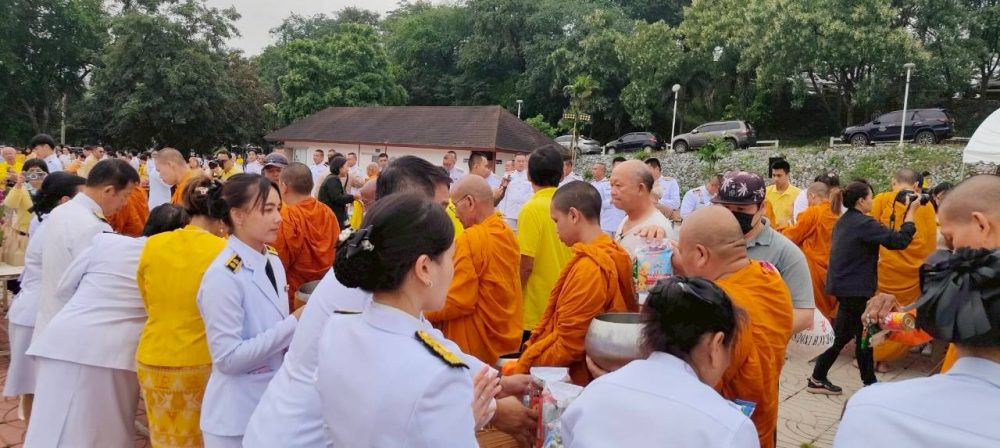 ภาคเช้า พิธีเจริญพระพุทธมนต์ และทำบุญตักบาตรถวายพระราชกุศล ณ วัดจันทึก อำเภอปากช่อง จังหวัดนครราชสีมา
