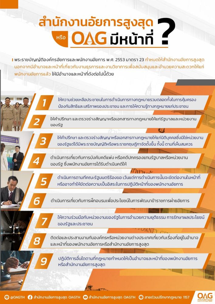 (มาตรา ๒๓) สำนักงานอัยการสูงสุด นอกจากมีอำนาจและหน้าที่เกี่ยวกับงานธุรการและงานวิชากร เพื่อสนับสนุนและอำนวยความสะดวกให้แก่พนักงานอัยการแล้ว ให้มีอำนาจและหน้าที่ ดังต่อไปนี้