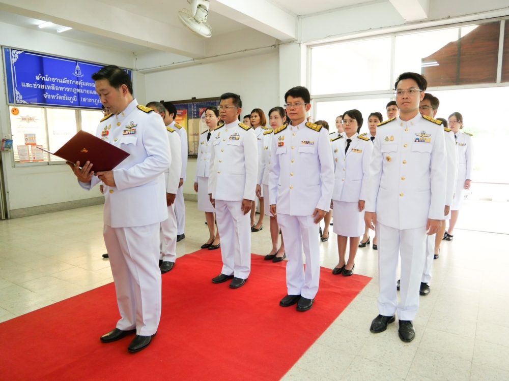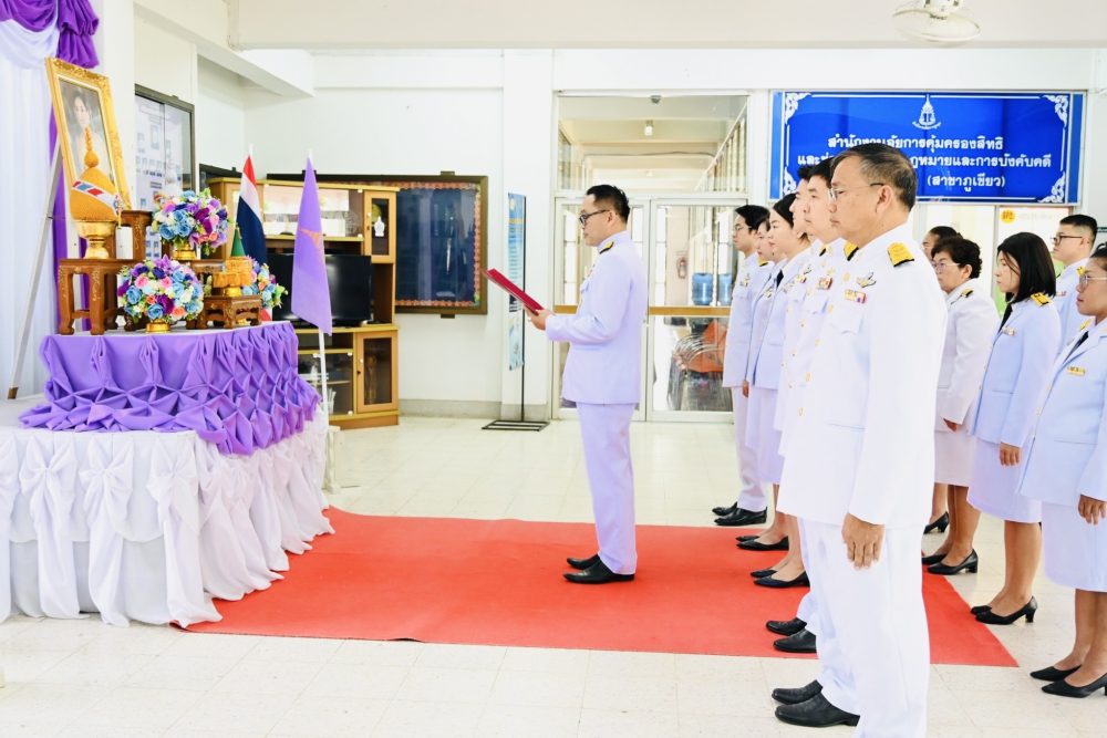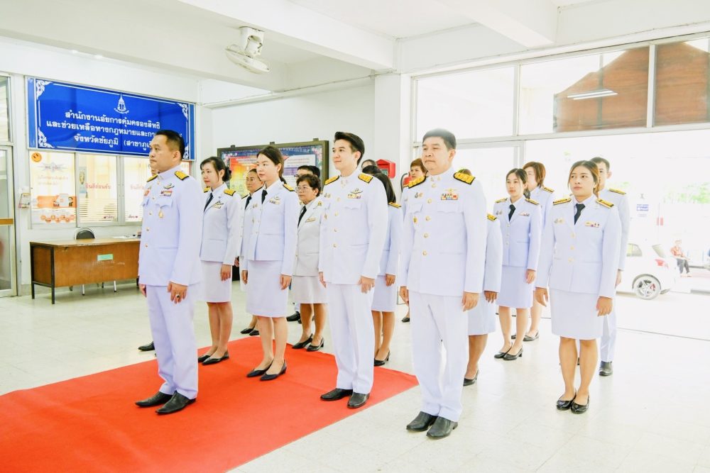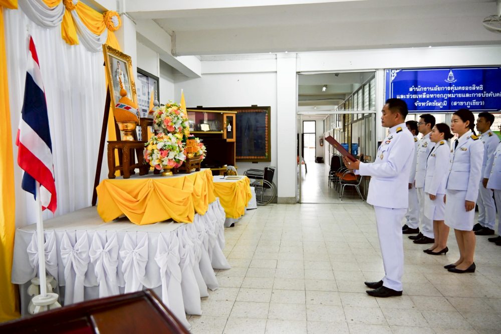 วันที่ ๒๘ กรกฎาคม ๒๕๖๗ นายเกียรติสุเมธ จันทราวดี อัยการจังหวัดภูเขียว พร้อมด้วยคณะข้าราชการอัยการ ข้าราชการธุรการ และบุคลากรสำนักงานอัยการจังหวัดภูเขียว จัดพิธีถวายพระพรชัยมงคลพระบาทสมเด็จพระเจ้าอยู่หัวและพิธีถวายสัตย์ปฏิญาณเพื่อเป็นข้าราชการที่ดีและพลังของแผ่นดิน เนื่องในโอกาสพระราชพิธีมหามงคลเฉลิมพระชนมพรรษา ๖ รอบ ๒๘ กรกฎาคม ๒๕๖๗ ณ สำนักงานอัยการจังหวัดภูเขียว อำเภอภูเขียว จังหวัดชัยภูมิ