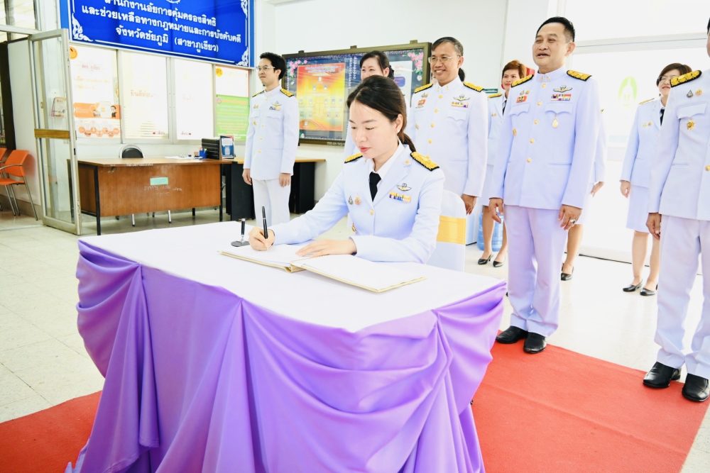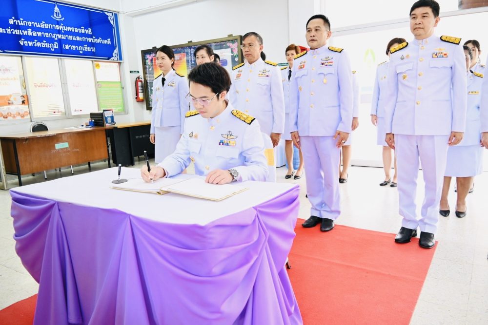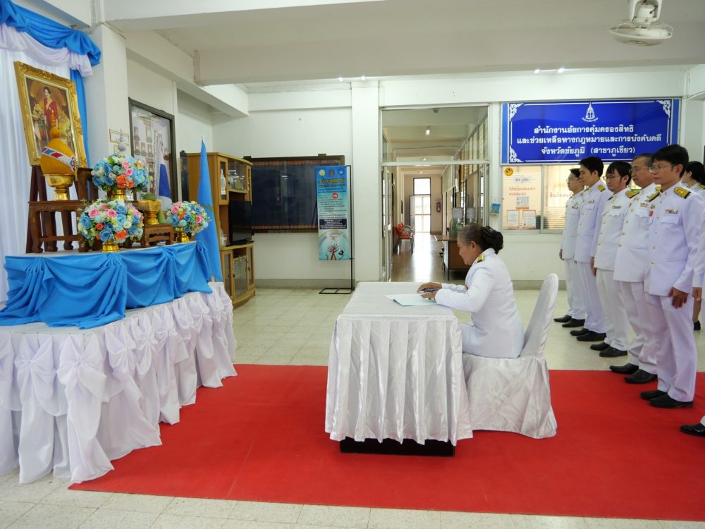 วันศุกร์ที่ ๑๔ มิถุนายน ๒๕๖๗ นายเกียรติสุเมธ จันทราวดี อัยการจังหวัดภูเขียว พร้อมด้วยคณะข้าราชการอัยการ ข้าราชการธุรการ และบุคลากรสำนักงานอัยการจังหวัดภูเขียว จัดพิธีลงนามถวายพระพรชัยมงคล เนื่องในวันเฉลิมพระชนมพรรษา สมเด็จพระนางเจ้าฯ พระบรมราชินี ๓ มิถุนายน ๒๕๖๗ ณ สำนักงานอัยการจังหวัดภูเขียว อำเภอภูเขียว จังหวัดชัยภูมิ