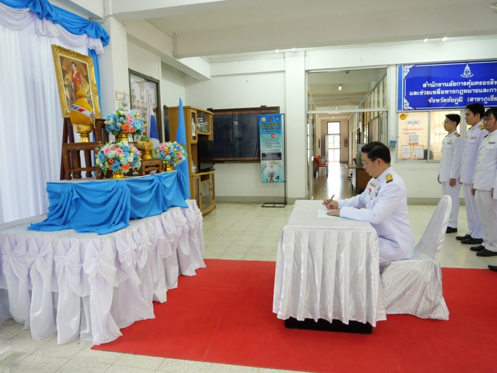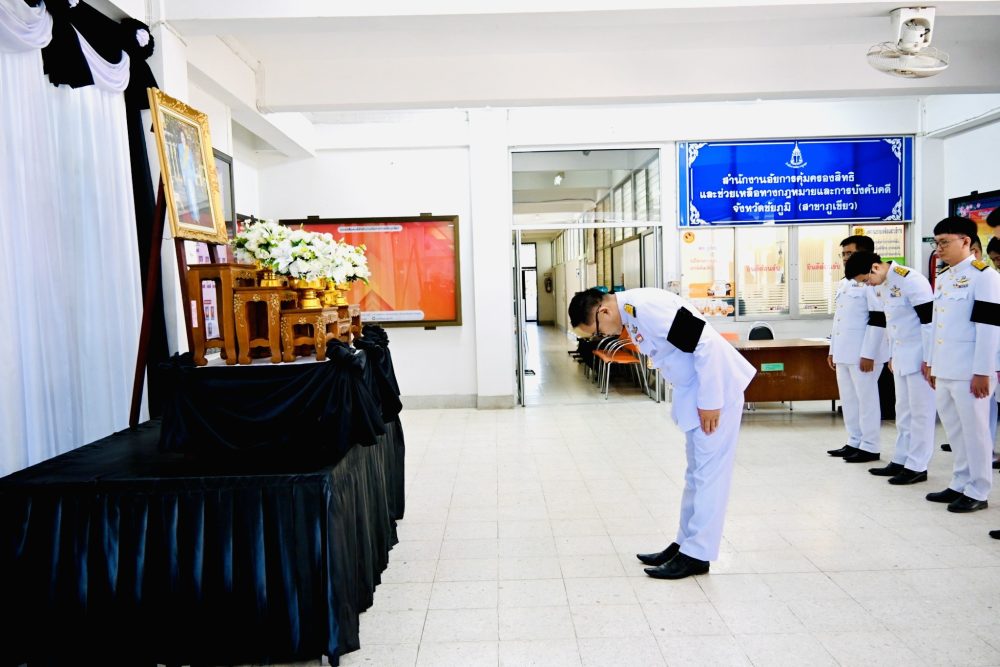 สำนักงานอัยการจังหวัดภูเขียว นำโดย นายอมฤต วะสมบัติ อัยการจังหวัดภูเขียว พร้อมด้วยข้าราชการฝ่ายอัยการ ร่วมประกอบพิธีและจัดกิจกรรม “รวมพลังแห่งความภักดี” เนื่องในวาระครบ ๑๐๐ วัน (สตมวาร) แห่งการเสด็จสวรรคต สมเด็จพระนางเจ้ารำไพพรรณี พระบรมราชินี พระพันปีหลวง เพื่อแสดงความอาลัยและน้อมรำลึกในพระมหากรุณาธิคุณอย่างหาที่สุดมิได้ ณ สำนักงานอัยการจังหวัดภูเขียว