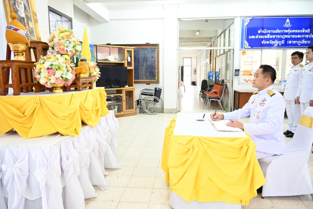 วันที่ ๒๖ กรกฎาคม ๒๕๖๕ นายเกียรติสุเมธ จันทราวดี อัยการจังหวัดภูเขียว พร้อมด้วยคณะข้าราชการอัยการ ข้าราชการธุรการ และบุคลากรสำนักงานอัยการจังหวัดภูเขียว ร่วมพิธีลงนามถวายพระพรชัยมงคล พระบาทสมเด็จพระเจ้าอยู่หัวฯ เนื่องในโอกาสวันเฉลิมพระชนมพรรษา ๒๘ กรกฎาคม ๒๕๖๕ ณ สำนักงานอัยการจังหวัดภูเขียว