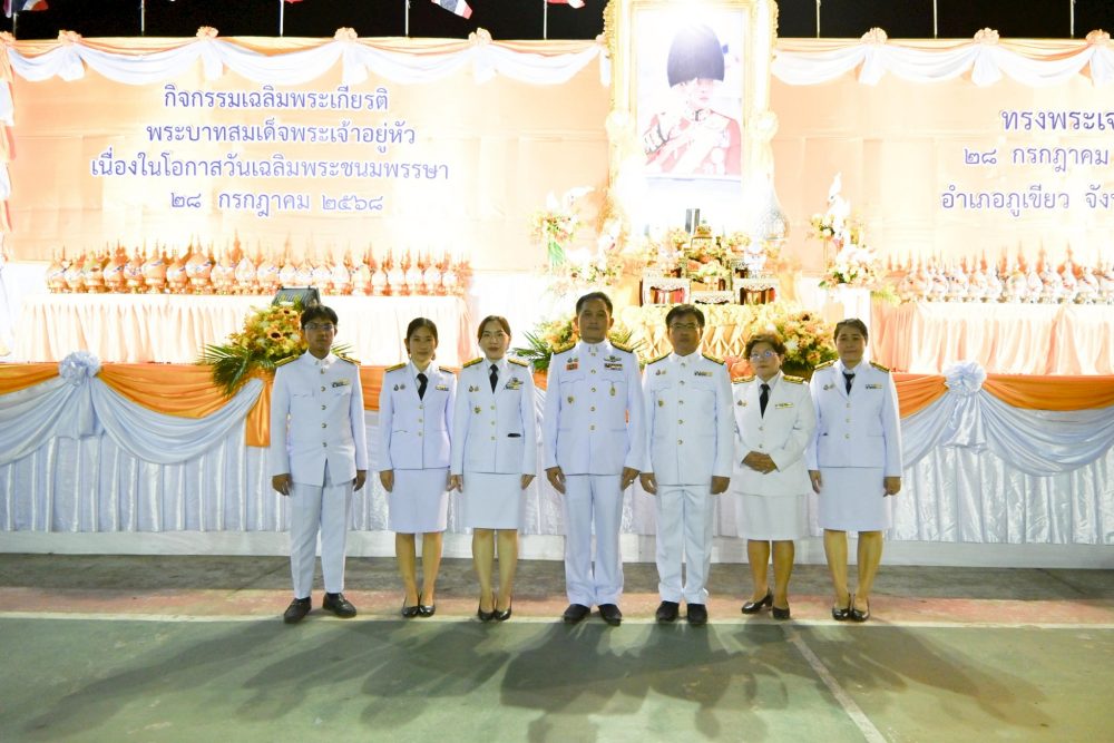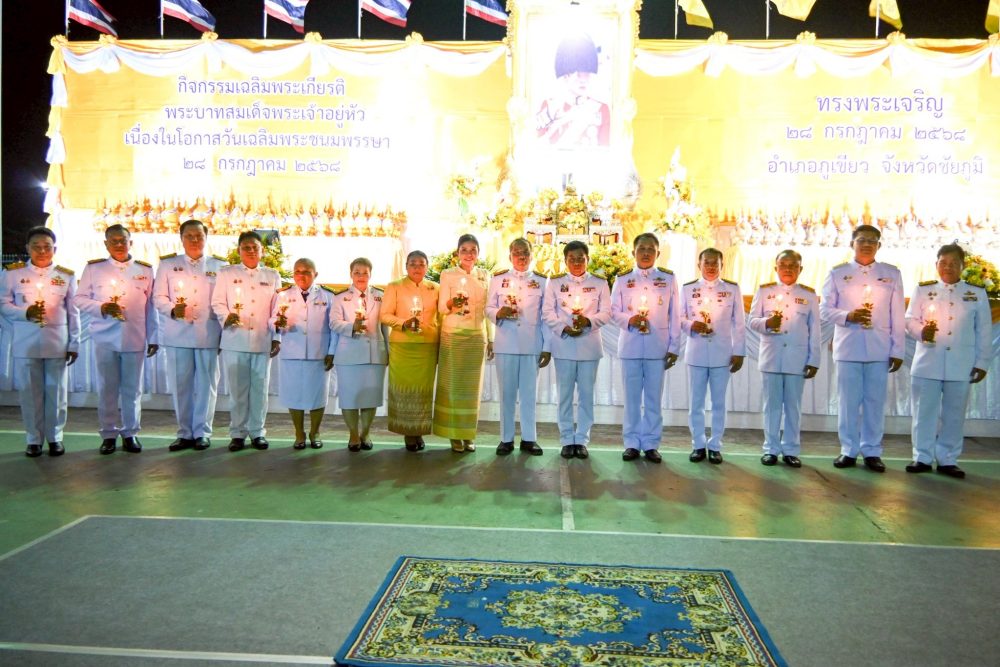 วันเฉลิมพระชนมพรรษาพระบาทสมเด็จพระเจ้าอยู่หัว เพื่อแสดงความจงรักภักดี และสำนึกในพระมหากรุณาธิคุณอันหาที่สุดมิได้ ณ บริเวณอาคารอเนกประสงค์ อำเภอภูเขียว จังหวัดชัยภูมิ