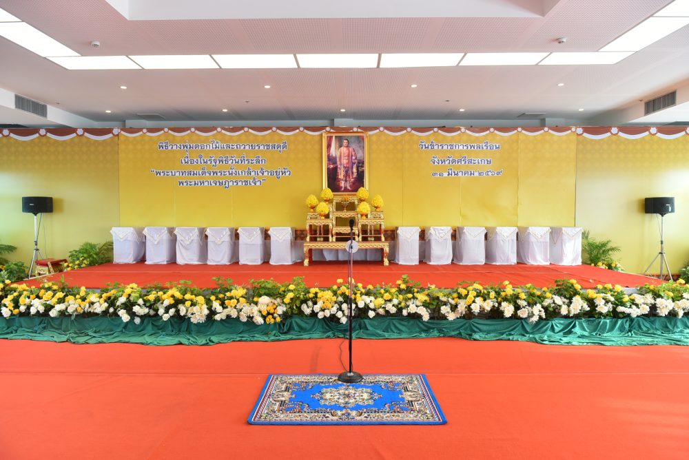 – พิธีวางพวงมาลาและถวายราชสดุดี ณ อาคารเฉลิมพระเกียรติฉลองสิริราชสมบัติ ครบ ๖๐ ปี อำเภอเมืองศรีสะเกษ จังหวัดศรีสะเกษ