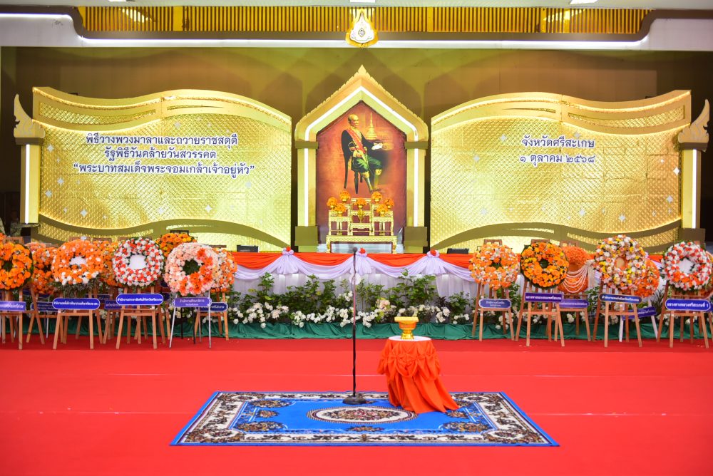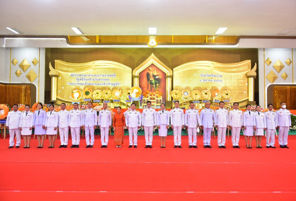 – พิธีวางพวงมาลาและถวายราชสดุดี ณ บริเวณลานพระบรมราชานุสาวรีย์ รัชกาลที่ ๕ ศาลากลางจังหวัดศรีสะเกษ