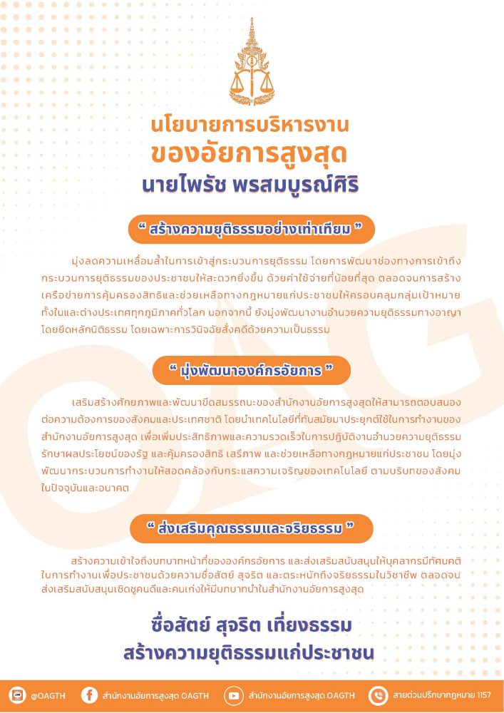 - อำนวยความยุติธรรมให้มีประสิทธิภาพ โปร่งใส พึ่งพิงได้บนพื้นฐานของความเสมอภาค
