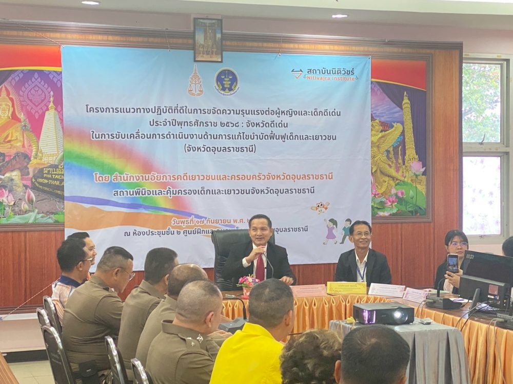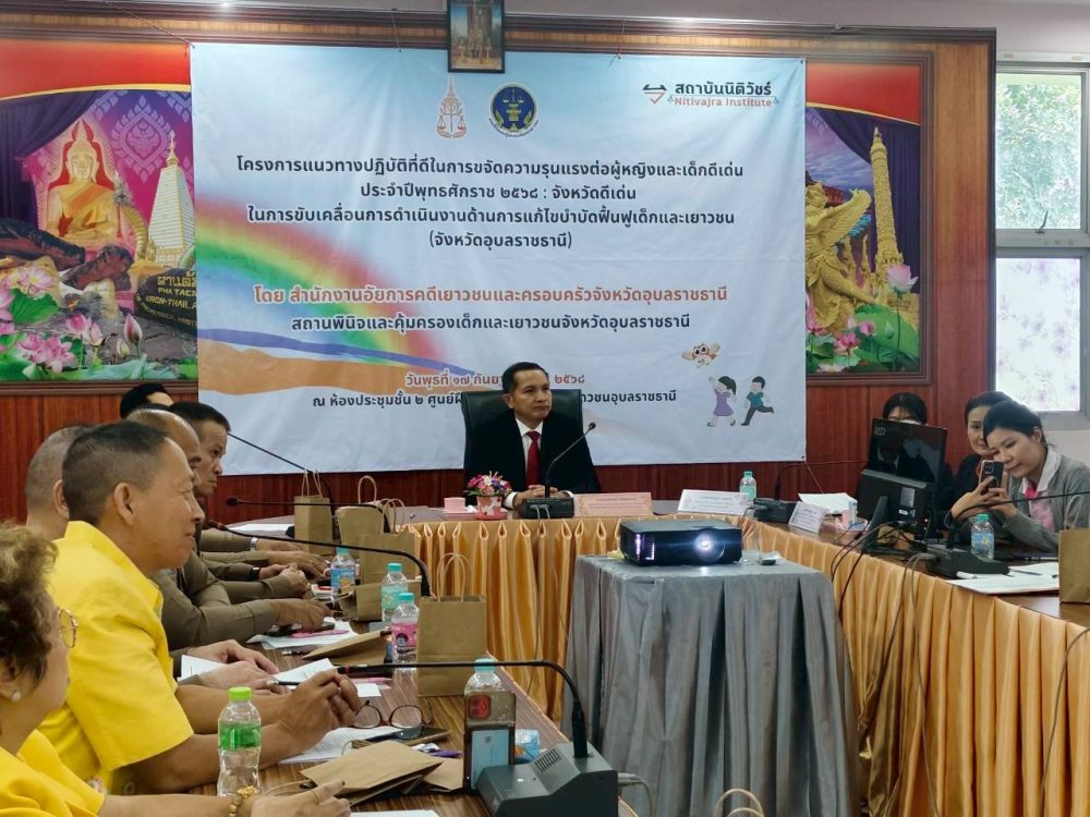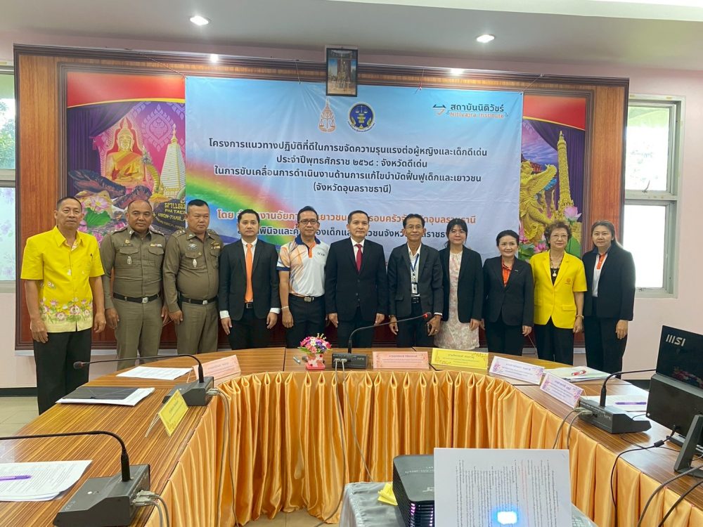 เมื่อวันที่ 17 กันยายน 2568 สำนักงานอัยการคดีเยาวชนและครอบครัวจังหวัดอุบลราชธานีร่วมกับสถานพินิจและคุ้มครองเด็กและเยาวชนจังหวัดอุบลราชธานี จัดกิจกรรม “โครงการแนวทางปฏิบัติที่ดีในการขจัดความรุนแรงต่อผู้หญิงและเด็กดีเด่น ประจำปีพุทธศักราช 2568 : จังหวัดดีเด่นในการขับเคลื่อนการดำเนินงานด้านการแก้ไขบำบัดฟื้นฟูเด็กและเยาวชน จังหวัดอุบลราชธานี” ณ ห้องประชุมชั้น 2 ศูนย์ฝึกและอบรมเด็กและเยาวชนอุบลราชธานีจังหวัดอุบลราชธานี ตำบลหัวเรือ อำเภอเมืองอุบลราชธานี จังหวัดอุบลราชธานี
