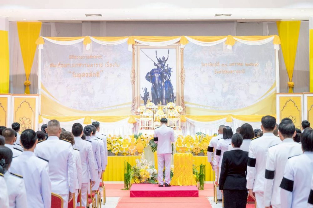 เมื่อวันอาทิตย์ที่ 18 มกราคม 2569 เวลา 07.30 นาฬิกา นายยุทธพงษ์ นิธิธนพงศ์ อัยการจังหวัดคดีเยาวชนและครอบครัวจังหวัดอุบลราชธานี พร้อมบุคลากรในสังกัด ร่วมพิธีถวายราชสักการะและวางพานพุ่มดอกไม้เบื้องหน้าพระบรมสาทิสลักษณ์สมเด็จพระนเรศวรมหาราช เนื่องใน “วันยุทธหัตถี” ณ หอประชุมจังหวัดอุบลราชธานี ตำบลแจระแม อำเภอเมืองอุบลราชธานี จังหวัดอุบลราชธานี