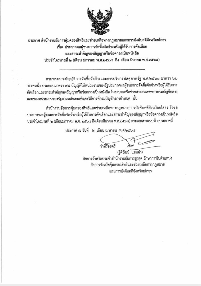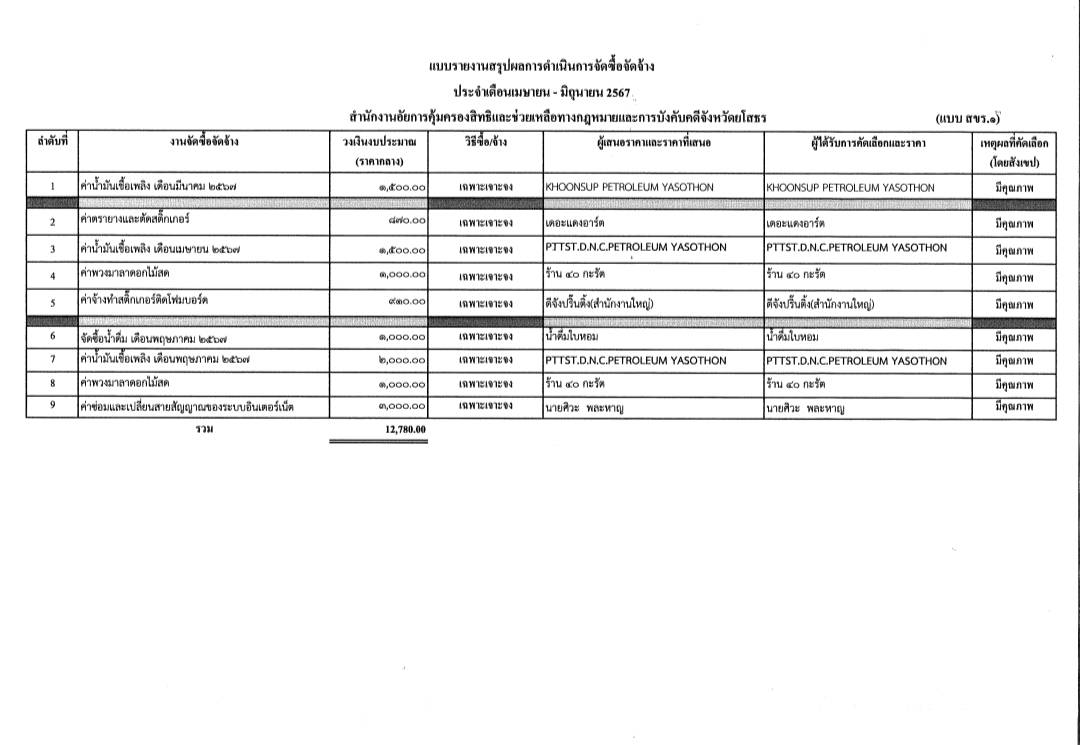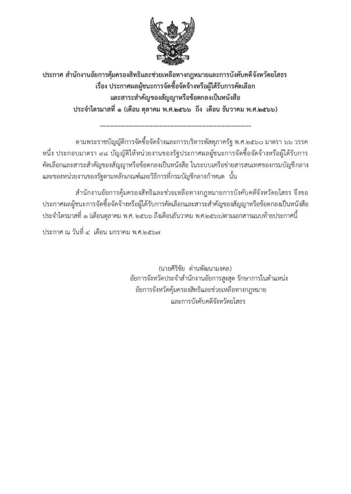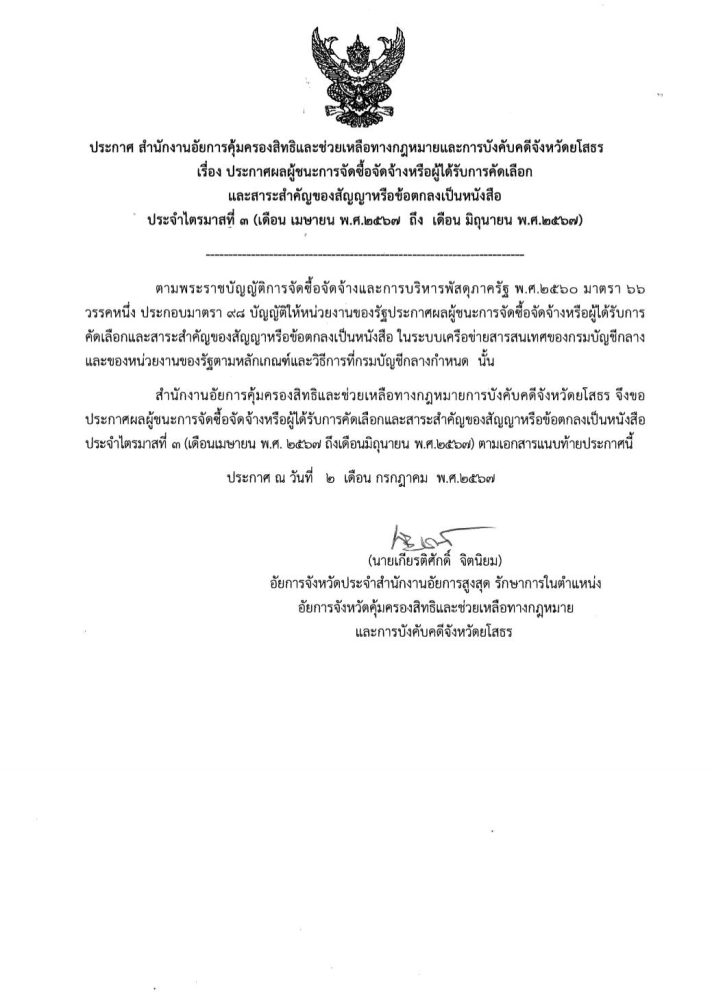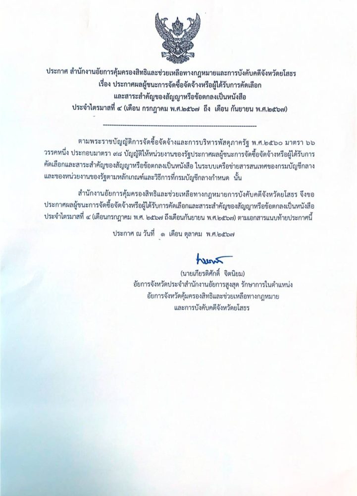 หากมีข้อสงสัยให้ติดต่อสอบถามที่สำนักงานอัยการคุ้มครองสิทธิและช่วยเหลือทางกฎหมายและการบังคับคดีจังหวัดยโสธร โทร. 0 4575 6763