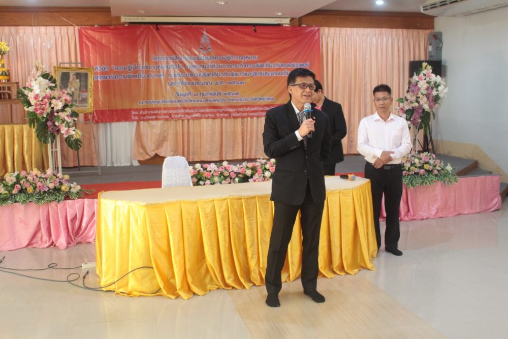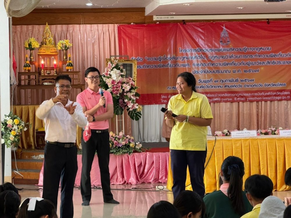 วันที่ 7 กุมภาพันธ์ 2567 สำนักงานอัยการคุ้มครองสิทธิและช่วยเหลือทางกฎหมายและการบังคับคดีจังหวัดยโสธร นำโดย นายศิริชัย ด่านพัฒนามงคล อัยการจังหวัดคุ้มครองสิทธิและช่วยเหลือทางกฎหมายและการบังคับคดีจังหวัดยโสธร จัดโครงการอบรมเผยแพร่ความรู้ทางกฎหมาย หัวข้อ “ความรู้เบื้องต้นกฎหมายทั่วไป กฎหมายว่าด้วยการกระทำความผิดเกี่ยวกับคอมพิวเตอร์ การกระทำความผิดเกี่ยวกับเพศ การกระทำความผิดเกี่ยวกับผู้เยาว์ และสิทธิประชาชนเกี่ยวกับเอดส์”เพื่อสร้างความรู้ความเข้าใจให้แก่เยาวชน และนักเรียน ให้มีความรู้เบื้องต้นทางกฎหมายเกี่ยวกับชีวิตประจำวัน ตลอดจนการปฏิบัติตนให้มีคุณธรรม จริยธรรม และระเบียบวินัยแก่เด็กและเยาวชน มีผู้เข้าร่วมโครงการอบรม จำนวน 248 คน ณ โรงเรียนค้อวังวิทยาคม ตำบลค้อวัง อำเภอค้อวัง จังหวัดยโสธร