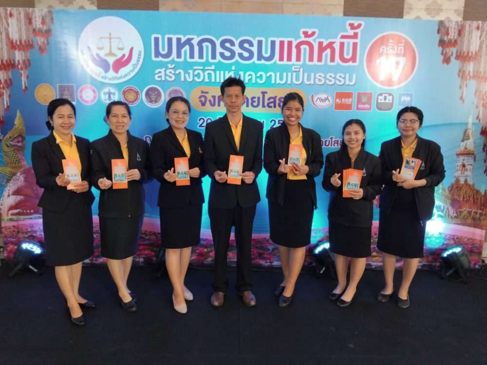 วันที่ ๑๕ มิถุนายน ๒๕๖๗ เวลา ๐๙.๐๐ นาฬิกา นายเกียรติศักดิ์ จิตนิยม อัยการจังหวัดคุ้มครองสิทธิและช่วยเหลือทางกฎหมายและการบังคับคดีจังหวัดยโสธร พร้อมเจ้าหน้าที่ เข้าร่วมกิจกรรม “ตลาดนัดแก้หนี้สัญจร” ประจำเดือนมิถุนายน ๒๕๖๗ เพื่อให้การแก้ไขปัญหาหนี้นอกระบบเป็นไปด้วยความเรียบร้อย ต่อเนื่อง เกิดการบูรณาการทุกภาคส่วน ณ หอประชุมที่ว่าการอำเภอไทยเจริญ อำเภอ ไทยเจริญ จังหวัดยโสธร