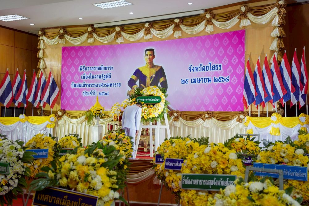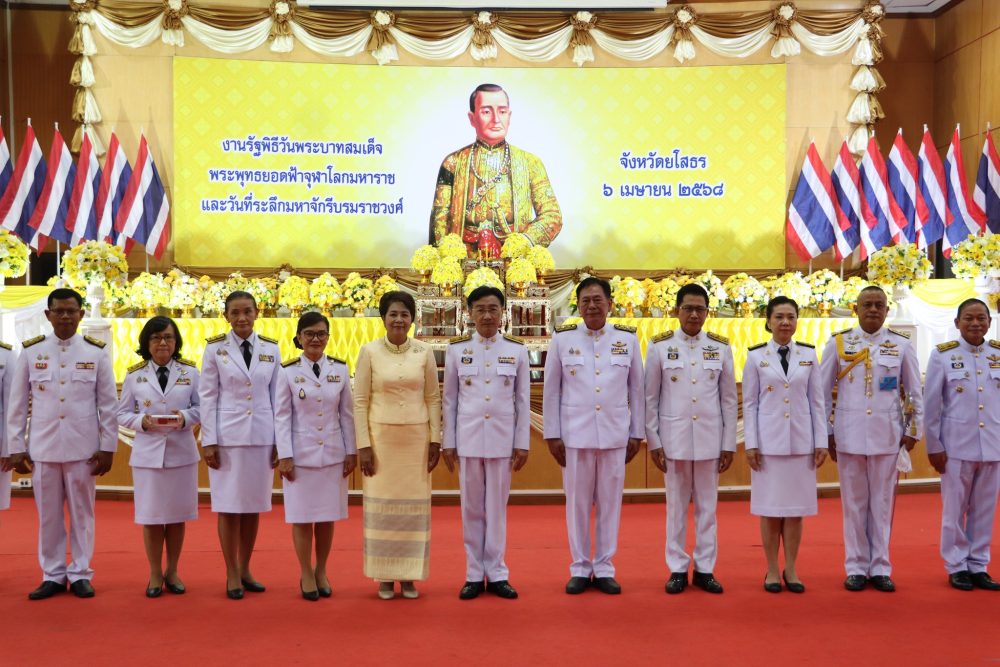 วันที่ ๖ เมษายน ๒๕๖๘ เวลา ๐๗.๐๐ นาฬิกา ว่าที่ร้อยตรีฐิติวัฒน์ แขมคำ อัยการจังหวัดคุ้มครองสิทธิและช่วยเหลือทางกฎหมายและการบังคับคดีจังหวัดยโสธร พร้อมเจ้าหน้าที่ ร่วมงานรัฐพิธีถวายสักการะเนื่องใน “วันที่ระลึกพระบาทสมเด็จพระนั่งเกล้าเจ้าอยู่หัวพระมหาเจษฎาราชเจ้า”และงานรัฐพิธีถวายราชสักการะเนื่องใน “วันพระบามสมเด็จพระพุทธยอดฟ้าจุฬาโลกมหาราช และวันที่ระลึกมหาจักรีบรมราชวงศ์” ณ หอประชุมจังหวัดยโสธร ศาลากลางจังหวัดยโสธร ตำบลในเมือง อำเภอเมืองยโสธร จังหวัดยโสธร