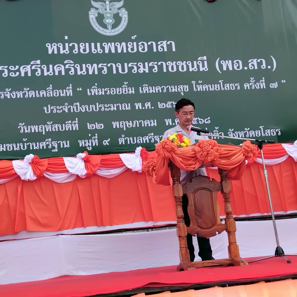 วันที่ ๒๒ พฤษภาคม ๒๕๖๘ เวลา ๐๘.๐๐ นาฬิกา ว่าที่ร้อยตรีฐิติวัฒน์ แขมคำ อัยการจังหวัดคุ้มครองสิทธิและช่วยเหลือทางกฎหมายและการบังคับคดีจังหวัดยโสธร พร้อมเจ้าหน้าที่ ร่วมออกปฏิบัติงานหน่วยแพทย์อาสาสมเด็จพระศรีนครินทราบรมราชชนนี (พอ.สว.) ร่วมกับโครงการจังหวัดเคลื่อนที่ “เพิ่มรอยยิ้ม เติมความสุข ให้คนยโสธร ครั้งที่ ๗” ประจำปีงบประมาณ พ.ศ.๒๕๖๘ เพื่อให้คำปรึกษากฎหมายทั่วไปให้กับประชาชน แจกเอกสาร และประชาสัมพันธ์ พันธกิจ ภารกิจ ของสำนักงานอัยการสูงสุด ณ บ้านศรีฐาน หมู่ที่ ๙ ตำบลศรีฐาน ตำบลป่าติ้ว อำเภอเลิงนกทา จังหวัดยโสธร
