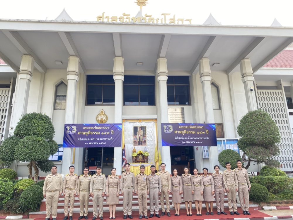วันที่ ๒๑ เมษายน ๒๕๖๘ เวลา ๐๗.๐๐ นาฬิกา ว่าที่ร้อยตรีฐิติวัฒน์ แขมคำ อัยการจังหวัดคุ้มครองสิทธิและช่วยเหลือทางกฎหมายและการบังคับคดีจังหวัดยโสธร พร้อมเจ้าหน้าที่ เข้าร่วมกิจกรรมบำเพ็ญกุศล พิธีสงฆ์ เนื่องในงานวันสถาปนาศาลยุติธรรม ประจำปี พ.ศ.๒๕๖๘ ณ ศาลจังหวัดยโสธร ตำบลในเมือง อำเภอเมืองยโสธร จังหวัดยโสธร